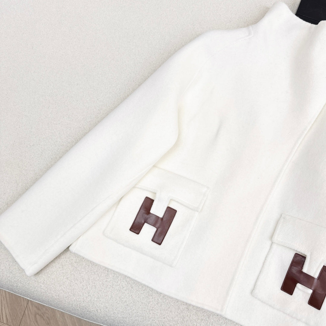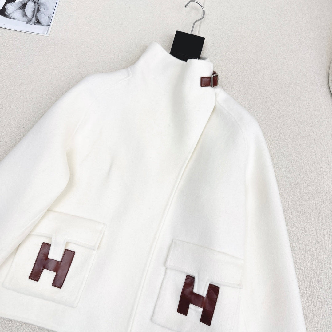 HERMES 25S DOUBLE-FACED WOOL STAND-COLLAR COAT 188