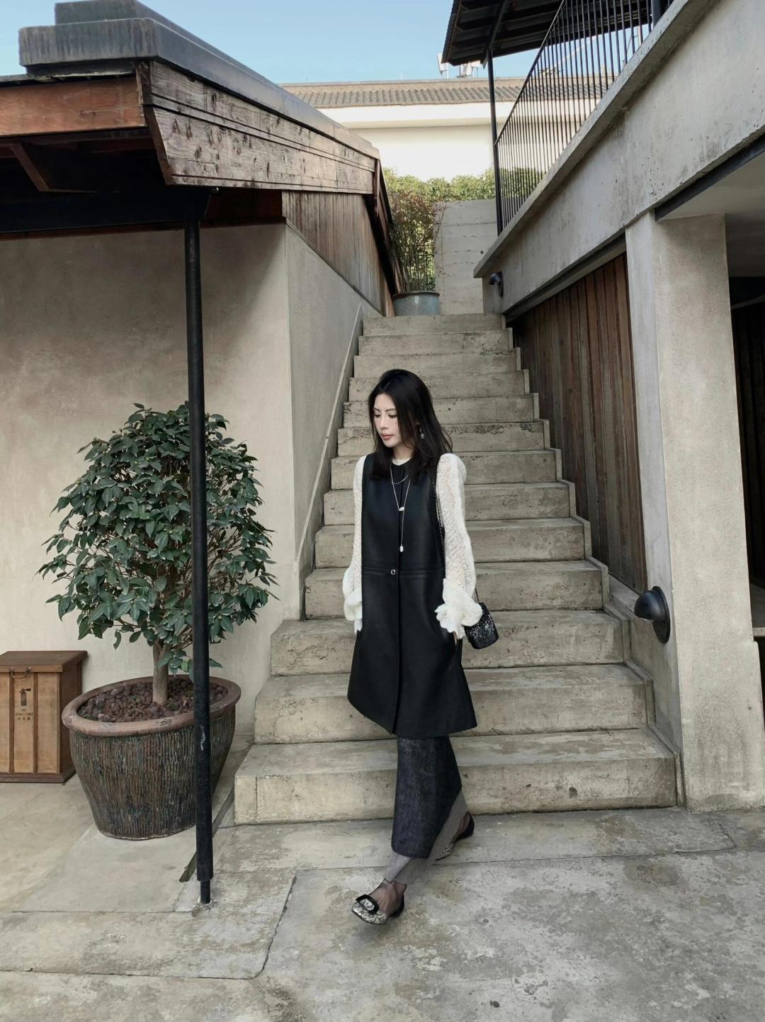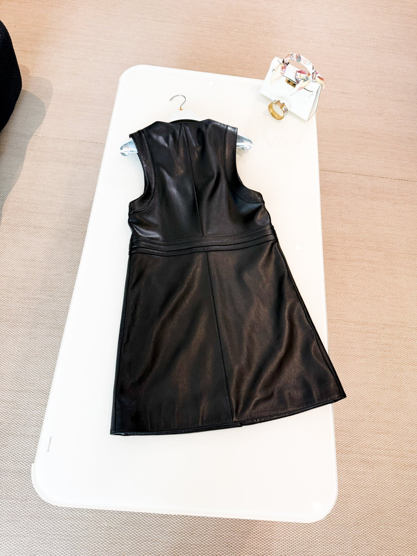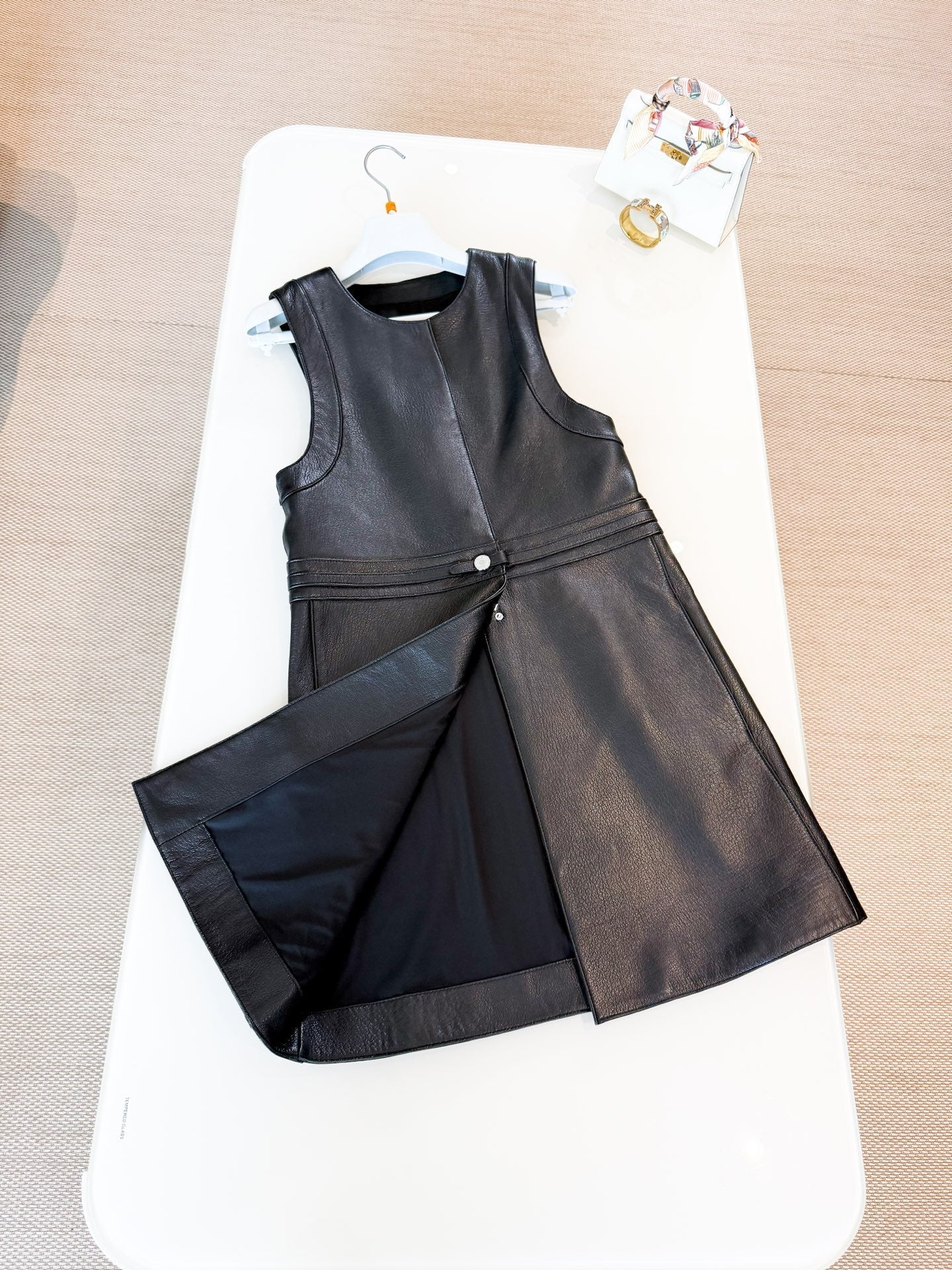HERMES 25S LEATHER-BUCKLE WAIST VEST DRESS 120