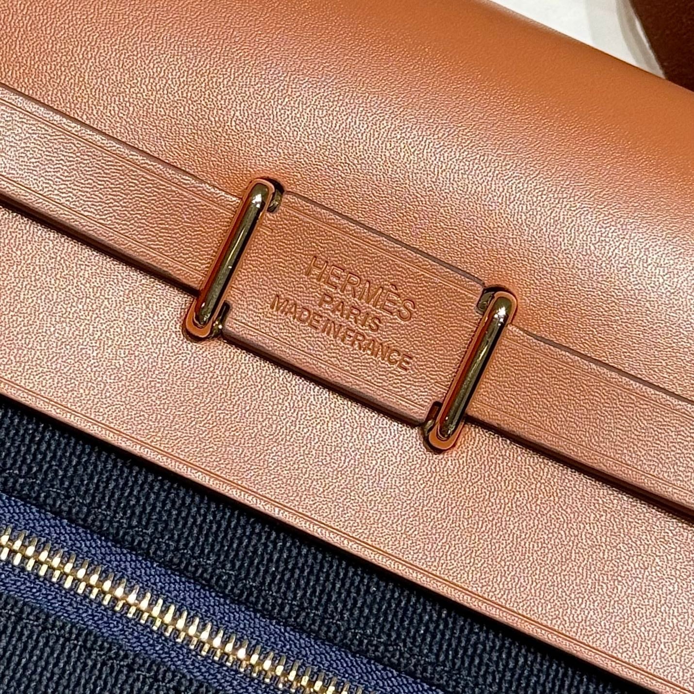 HERMES 25S MINI HERBAG 20 IN NAVY BLUE CANVAS GOLD HARDWARE