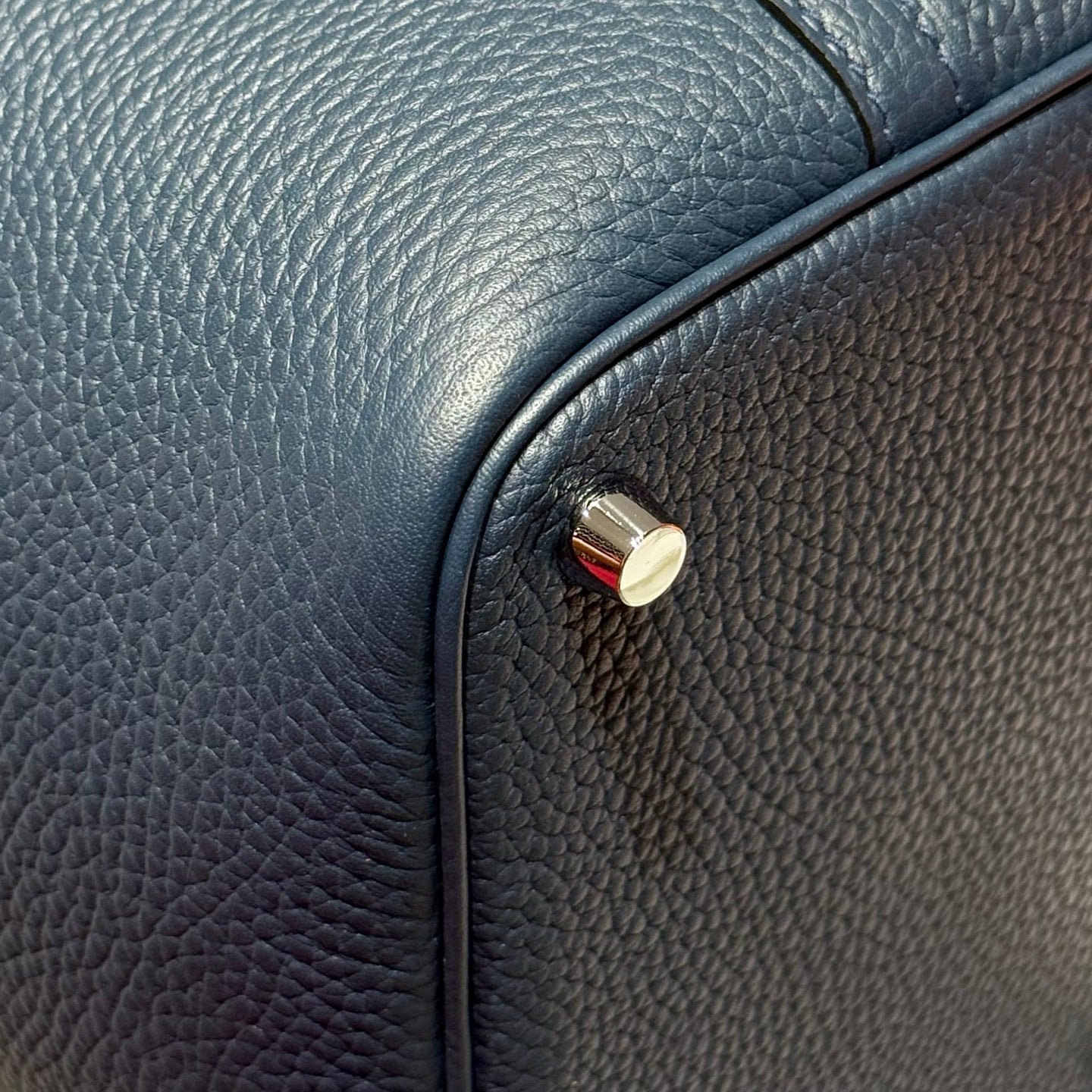 HERMES 25S PICOTIN LOCK 18 IN NAVY BLUE CALFSKIN SILVER HARDWARE
