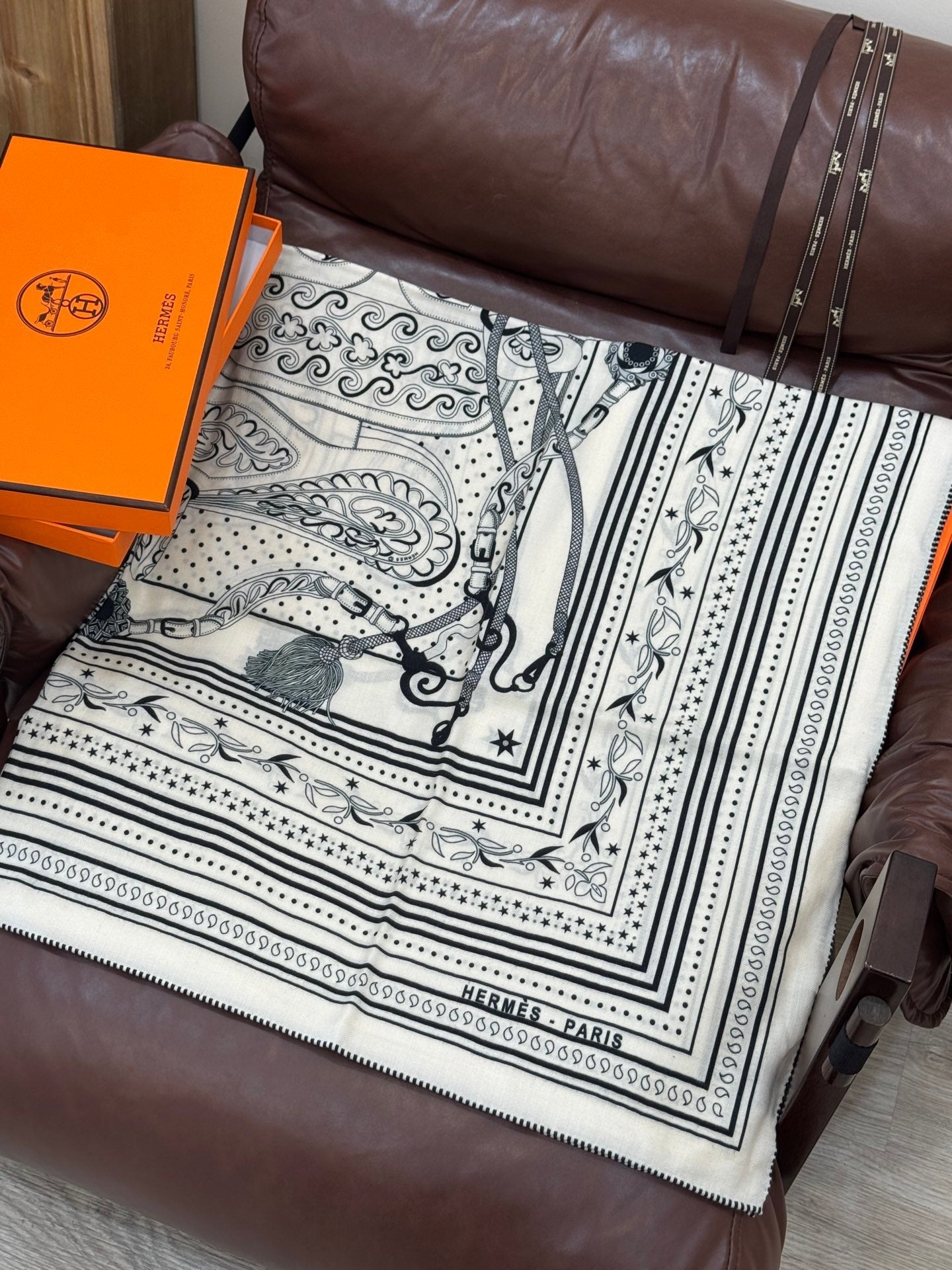 HERMES 25S SCARF 140 IN CASHMERE SILK 727316