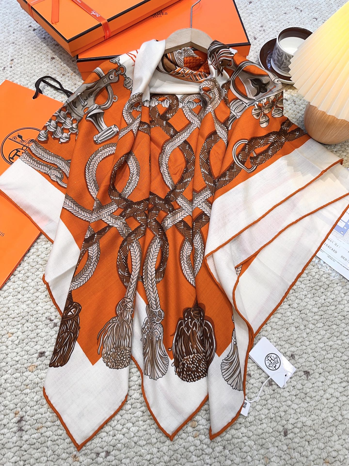 HERMES 25S SCARF 140 IN CASHMERE SILK 854539