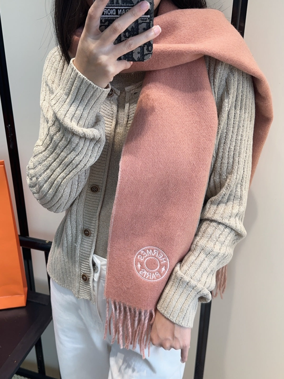 HERMES 25S SCARF 190 IN CASHMERE 854621