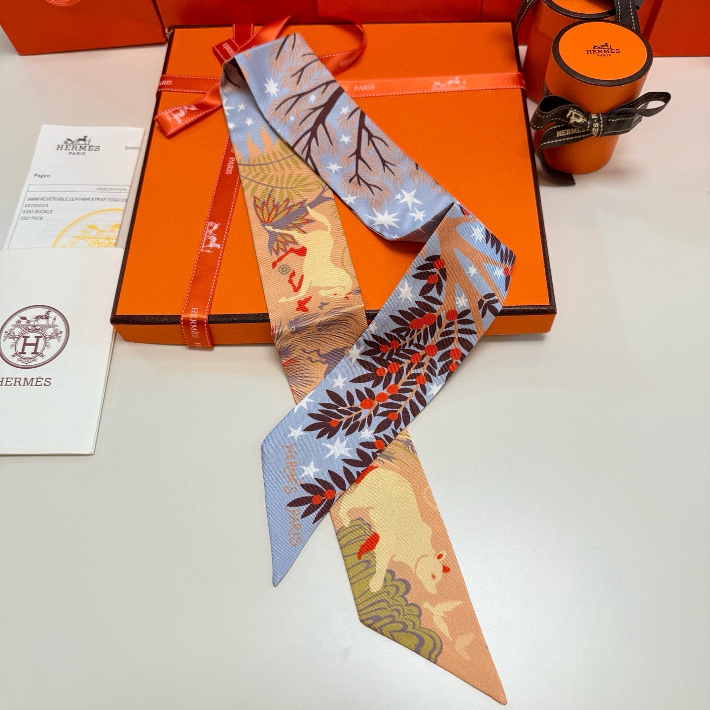 HERMES 25S SILK NECKERCHIEF 86 IN SILK 714350
