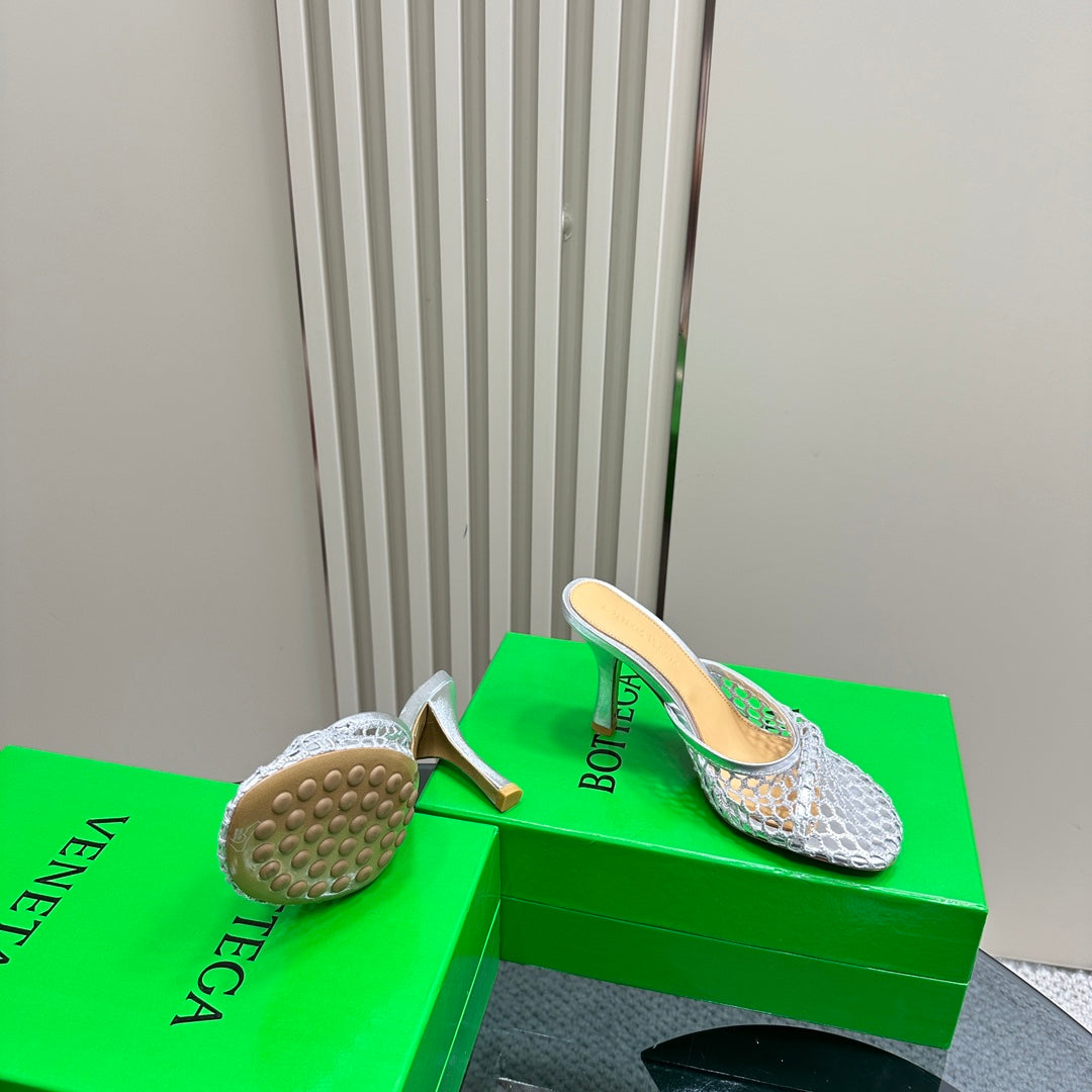 HIGH MULE 9 CM IN SILVER METALLIZE MESH AND LEATHER