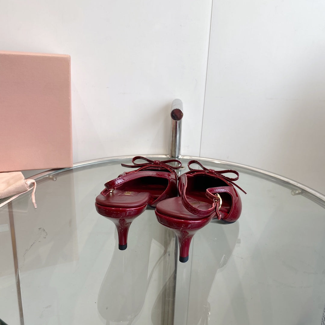 HIGH-SLINGBACK POINTED TOE SANDALS RUBY COWHIDE WITH BOW