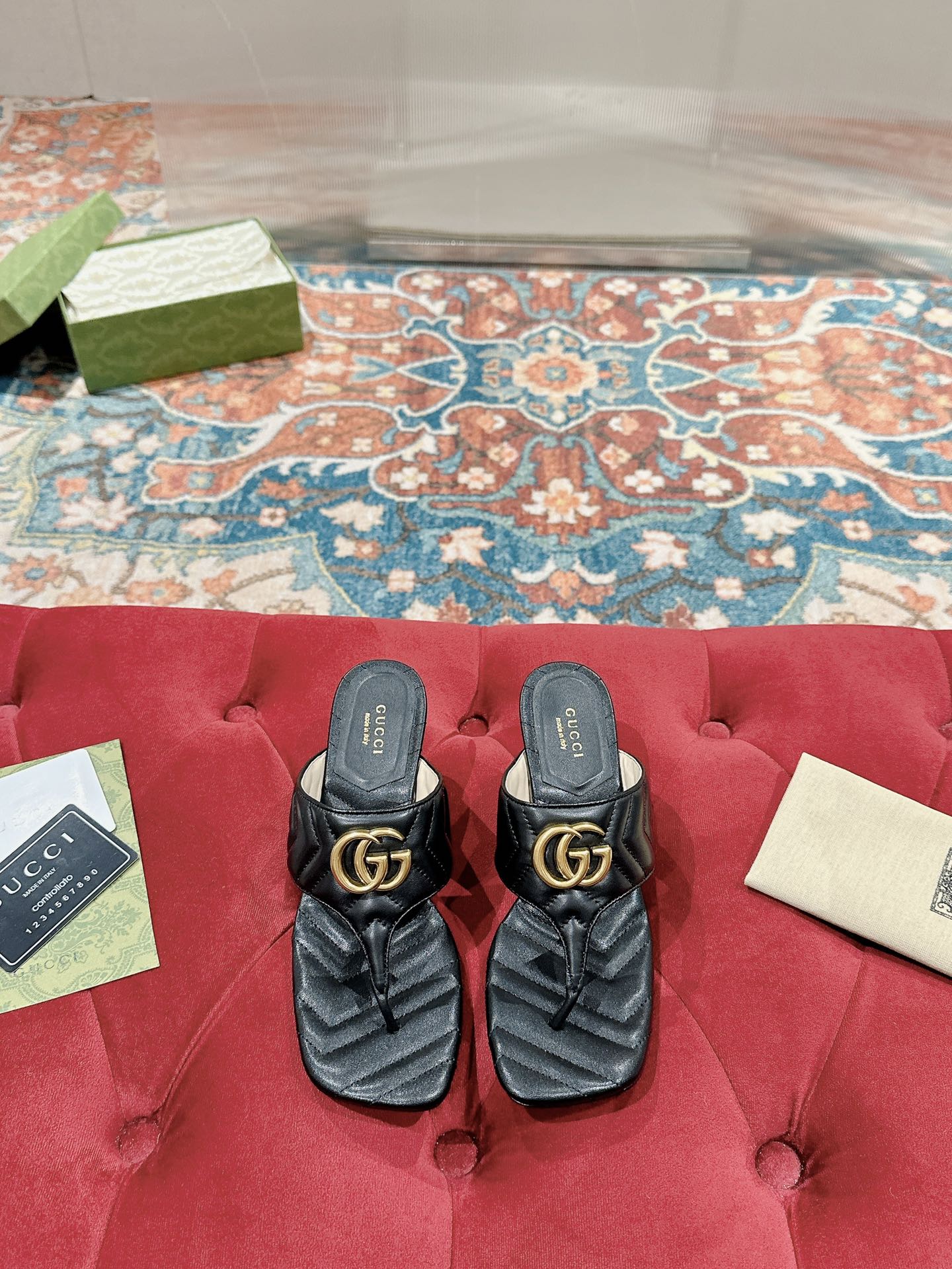 HIGH THONG MULE 55MM IN BLACK CALFSKIN WITH GOLD HARDWARE