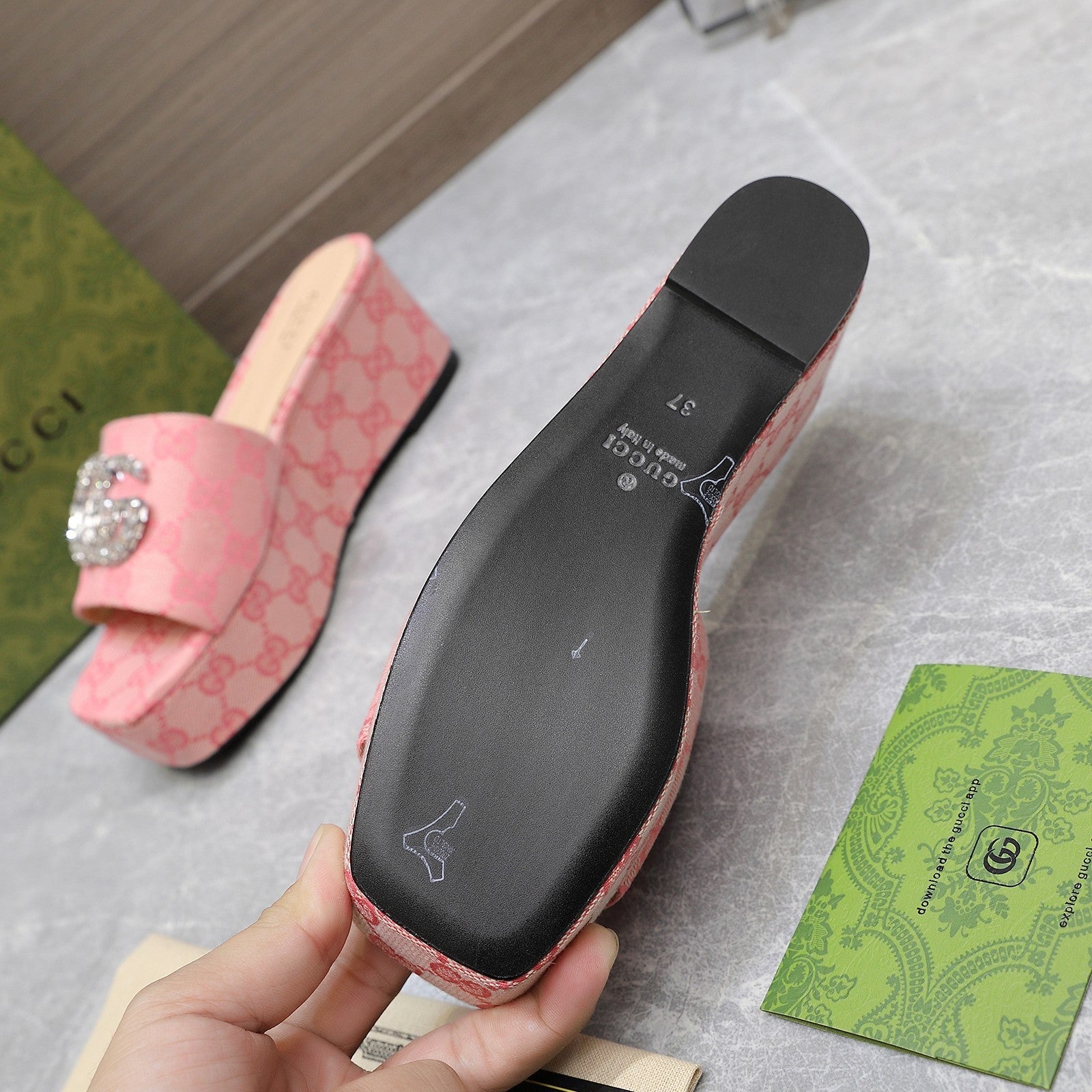 HIGH WEDGE PLATFORM WITH DOUBLE G IN LIGHT PINK CANVAS