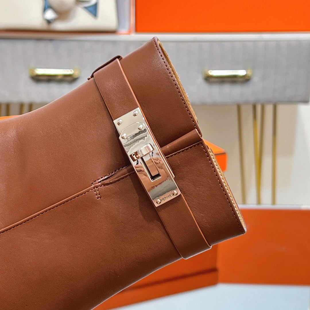 HM 25S SAINT GERMAIN ANKLE BOOTS 90 MM IN BROWN LAMBSKIN WITH SILVER HARDWARE