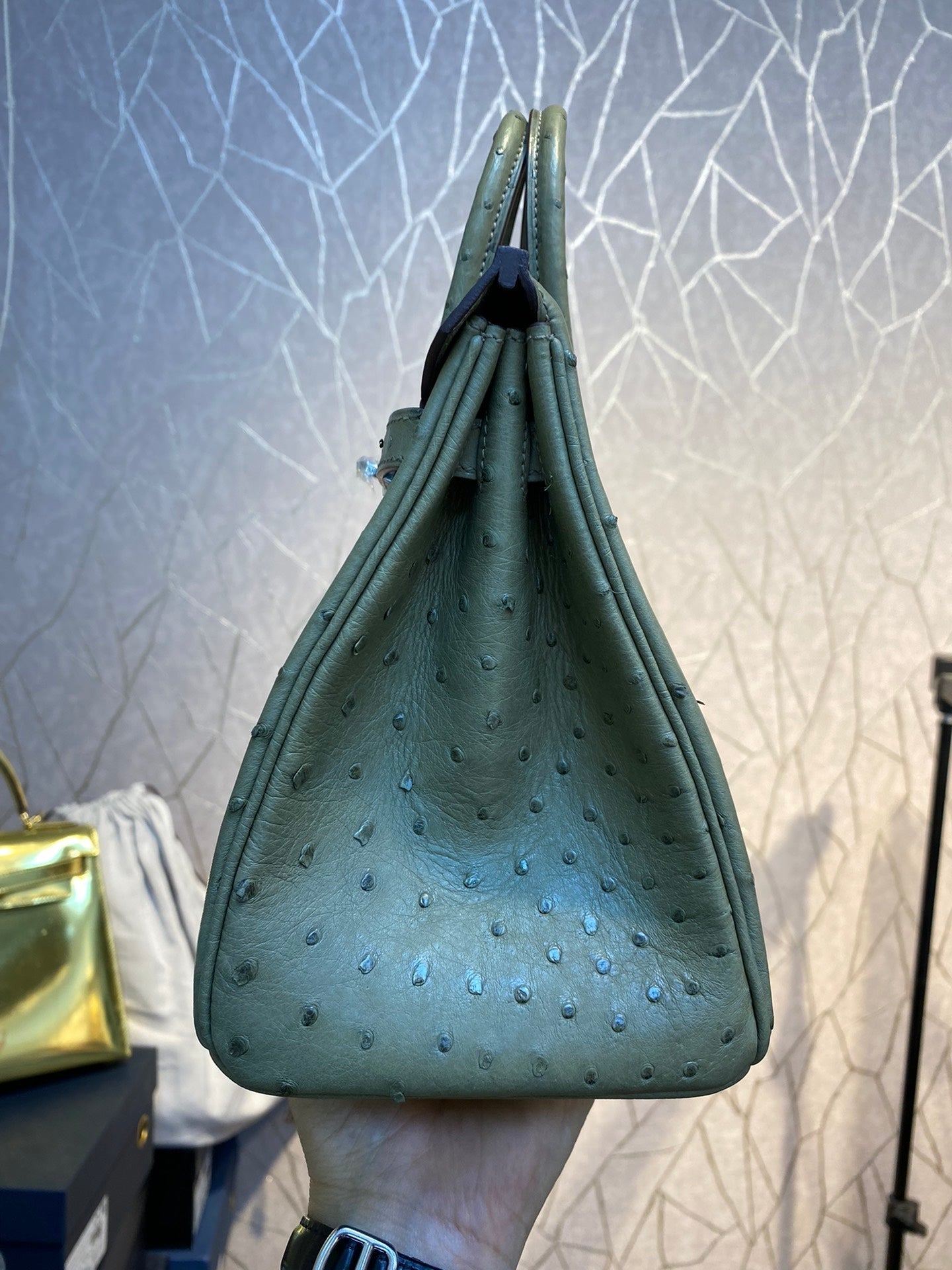 HM BIRKIN 30CM KHAKI OSTRICH LEATHER SILVER HARDWARE