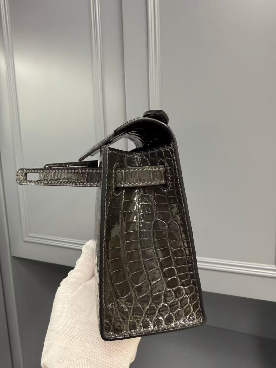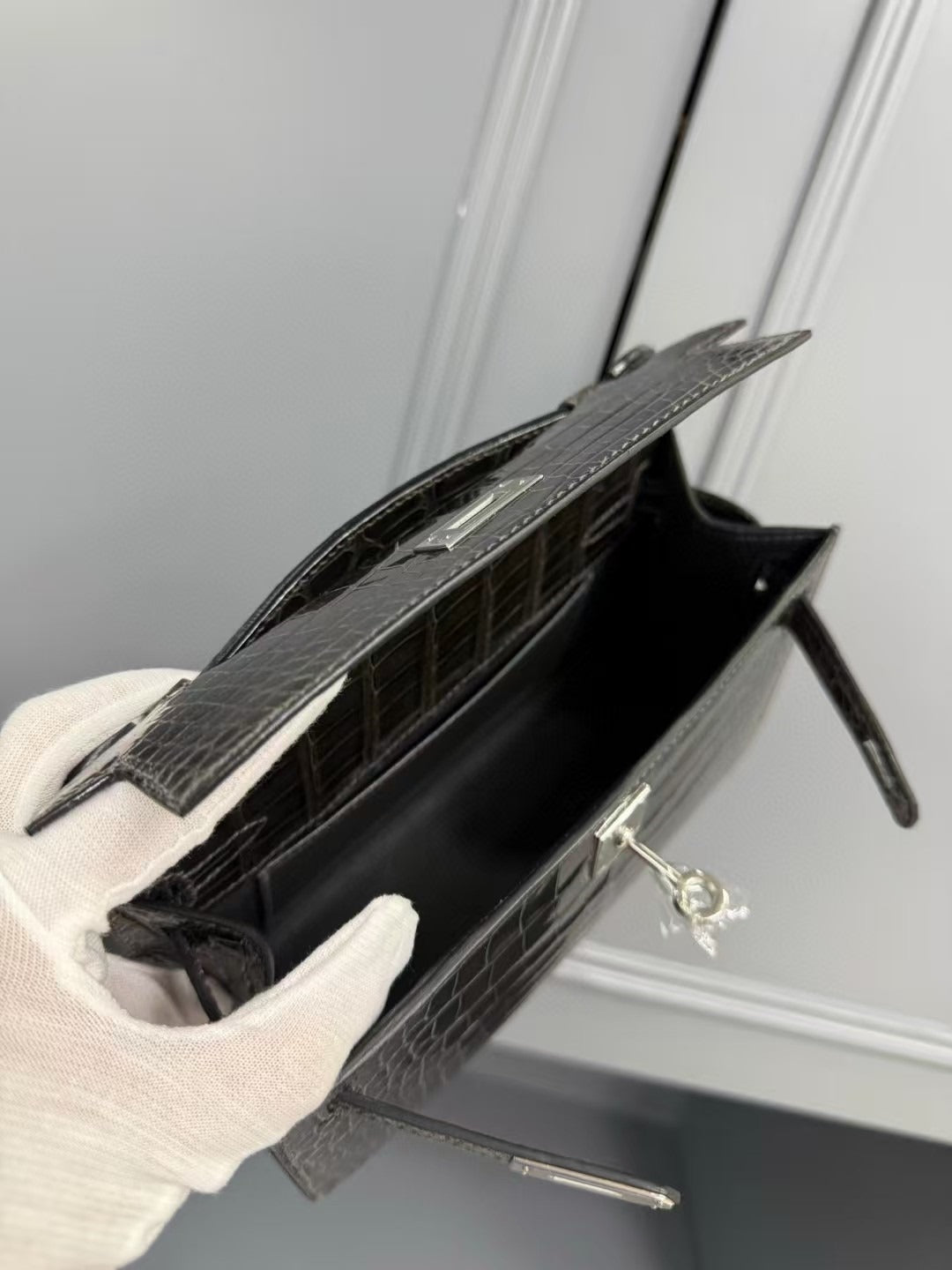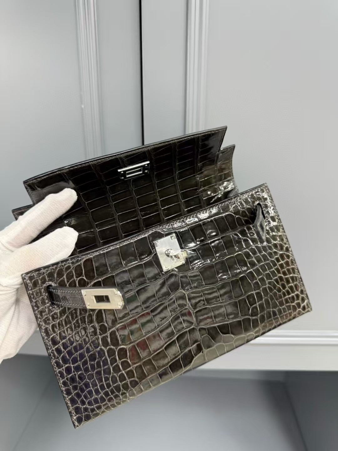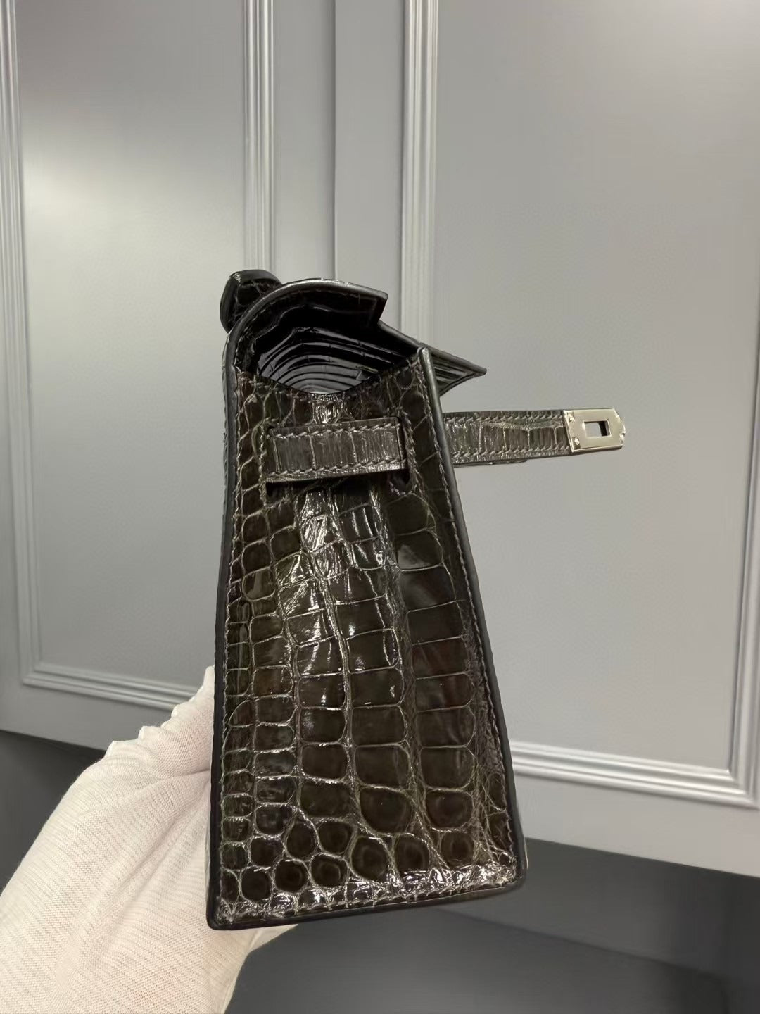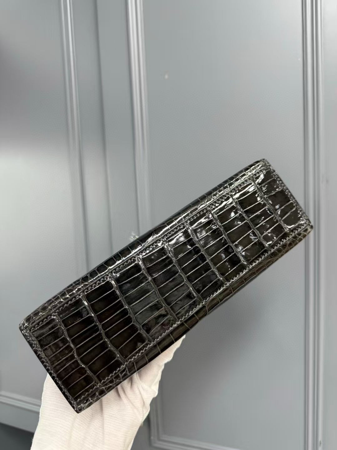 HM KELLY MINI 22 IN BROWN AMERICAN ALLIGATOR SILVER BUCKLE