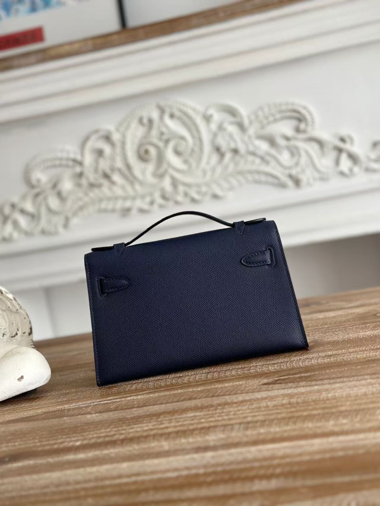 HM KELLY MINI POCHETTE 22 IN NAVY BLUE CALFSKIN