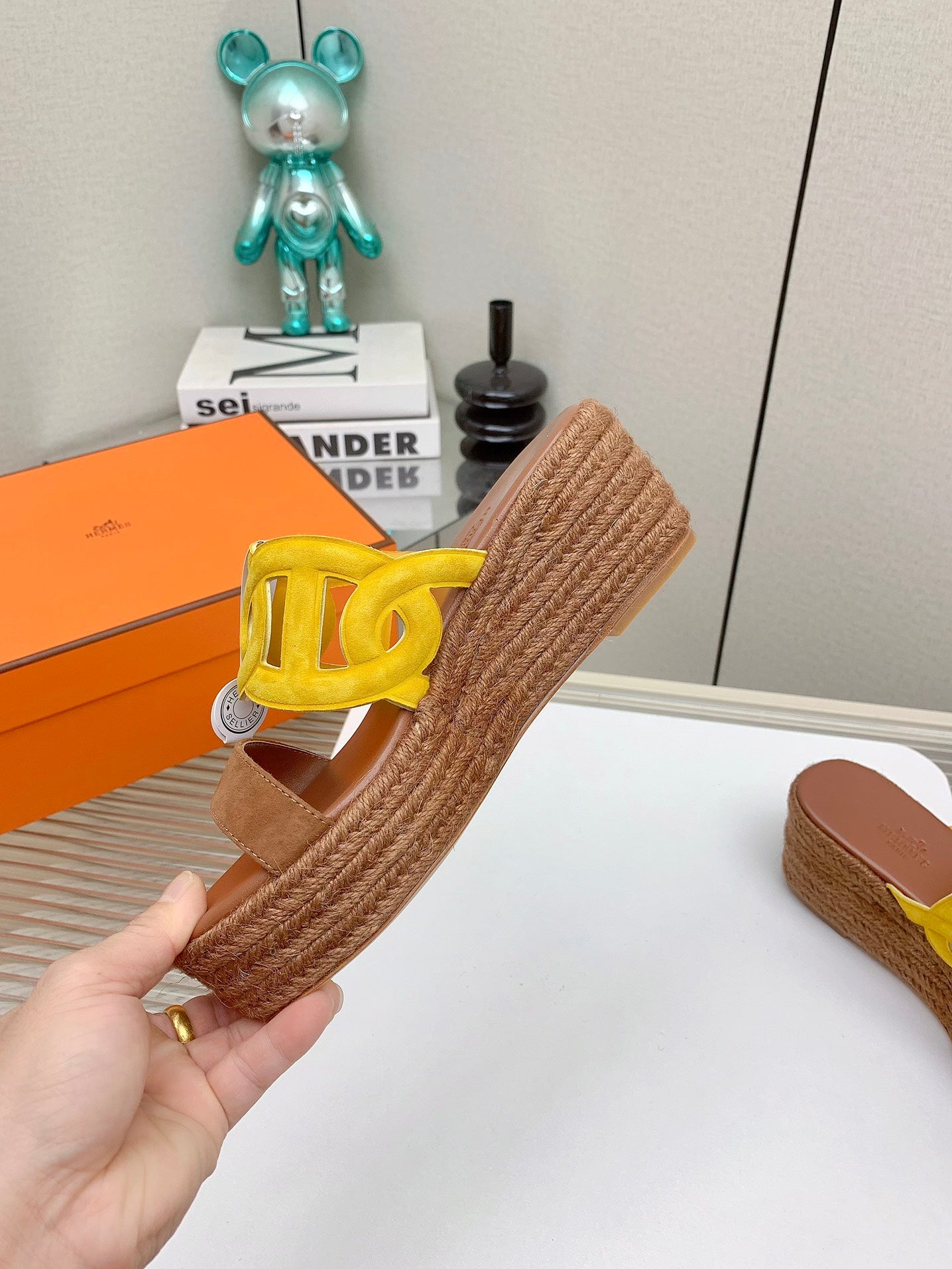 • Outsole: Espadrille-edged sole, PU platform with genuine leather outsole