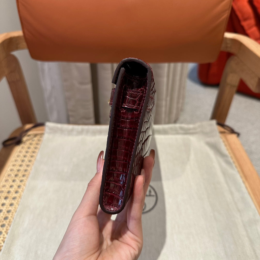 KELLY CUT 31 IN SANGRIA PURPLE ALLIGATOR LEATHER WITH GOLD HARDWARE