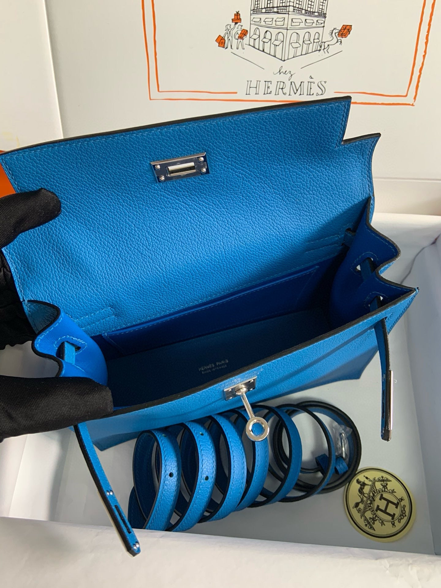 KELLY DANSE 22 EVERCOLOR BLUE IN CALFSKIN GOLD HARDWARE