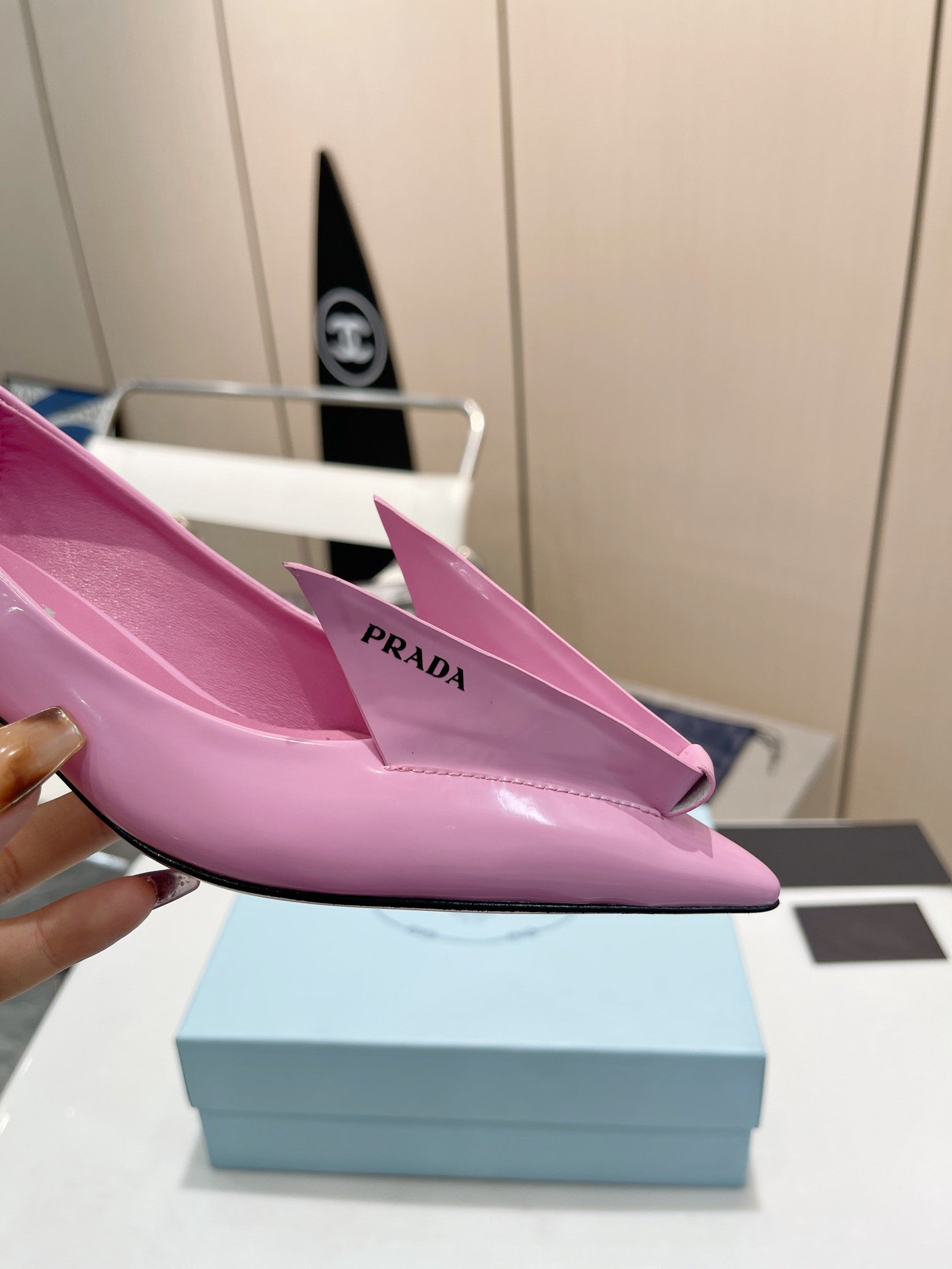 KITTEN HEEL PUMPS WITH CREATIVE SHAPE IN PINK GLOSSY LAMBSKIN