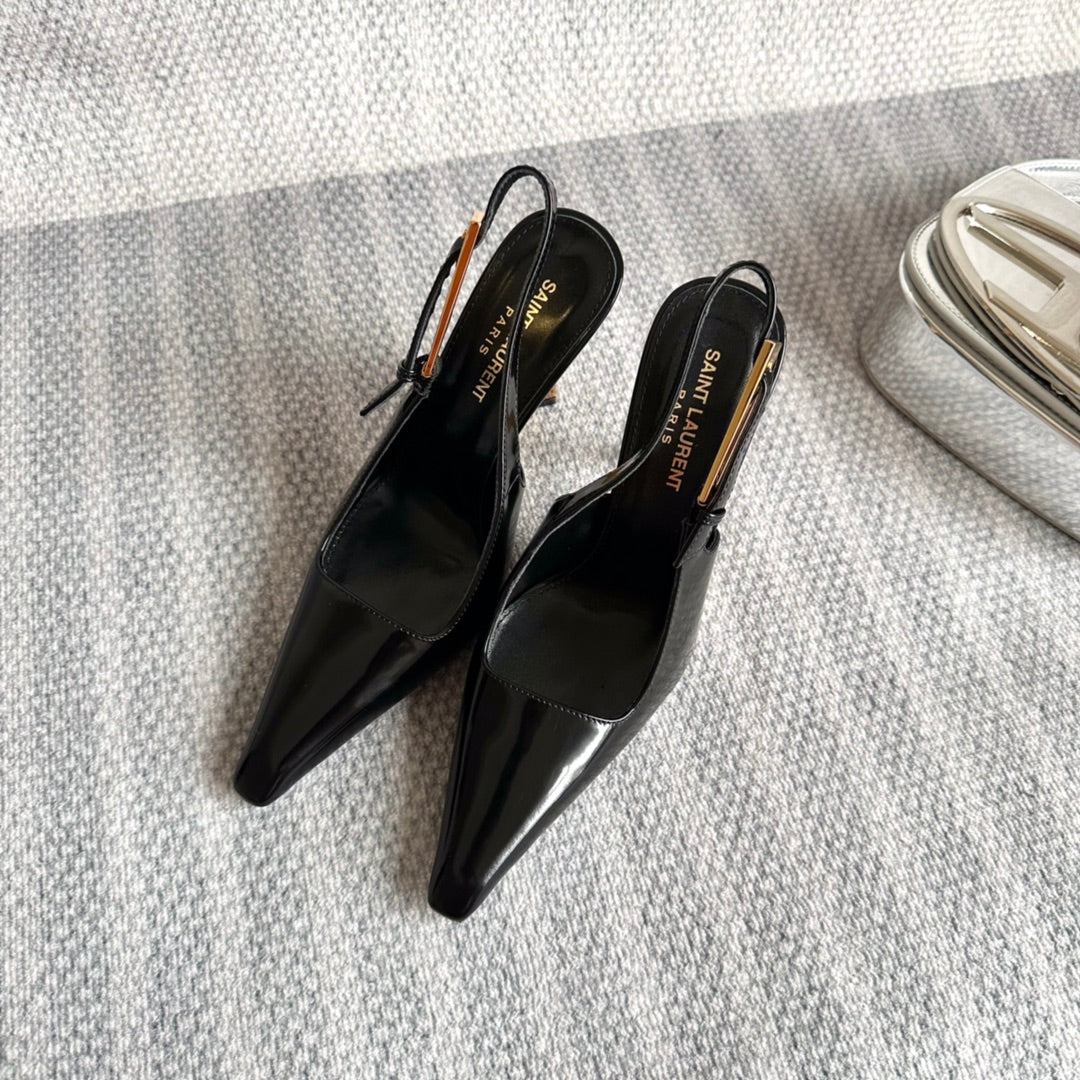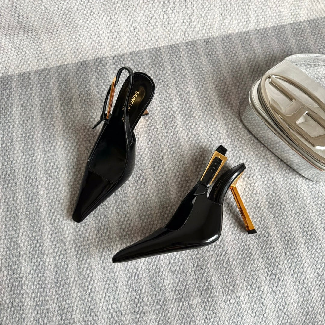 LEE SLINGBACK PUMPS 105 IN BLACK PATENT LEATHER GOLD HEEL