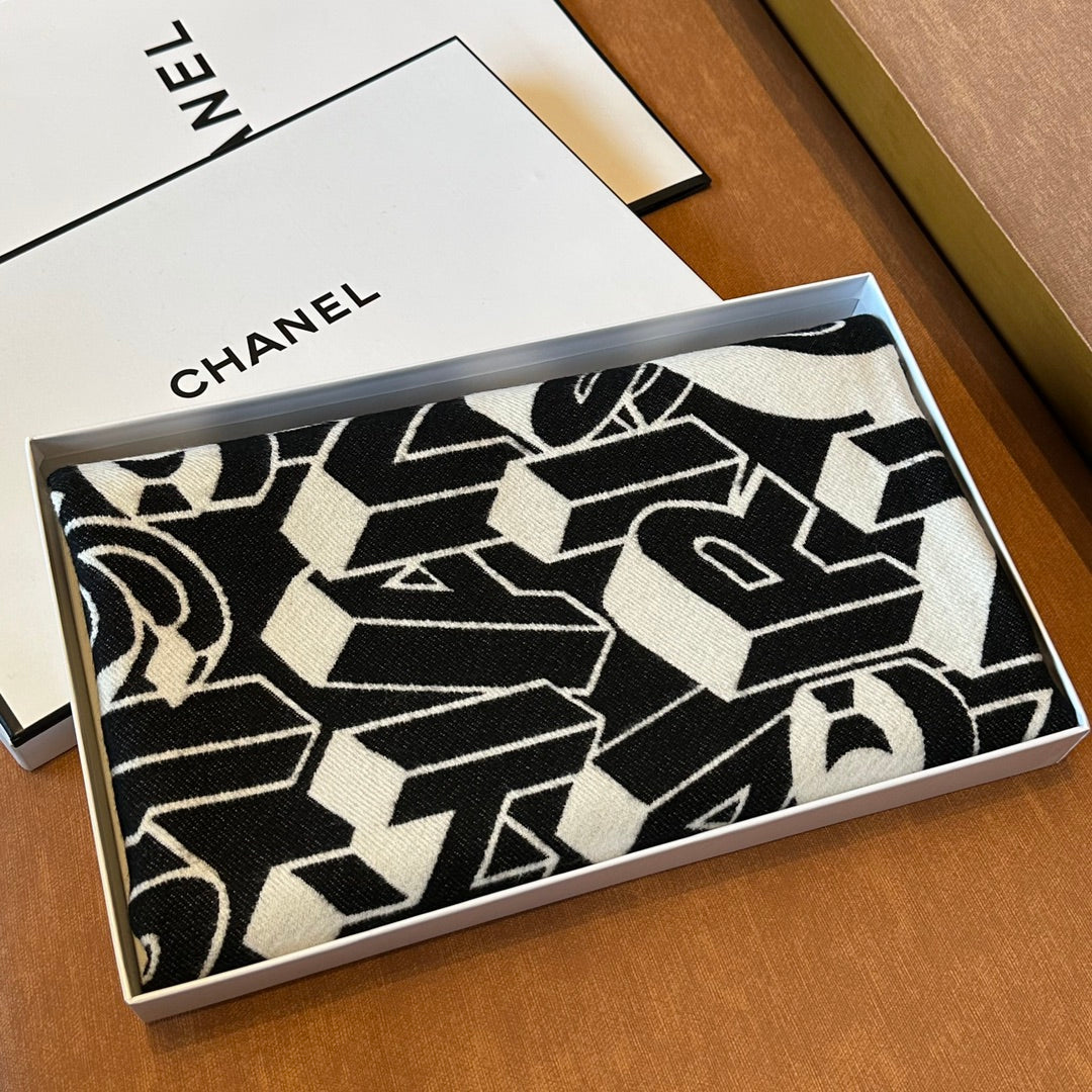 LETTER LOGO 178 CM SCARF IN BLACK MIX WHITE SHEEP WOOL AND SILK  393103