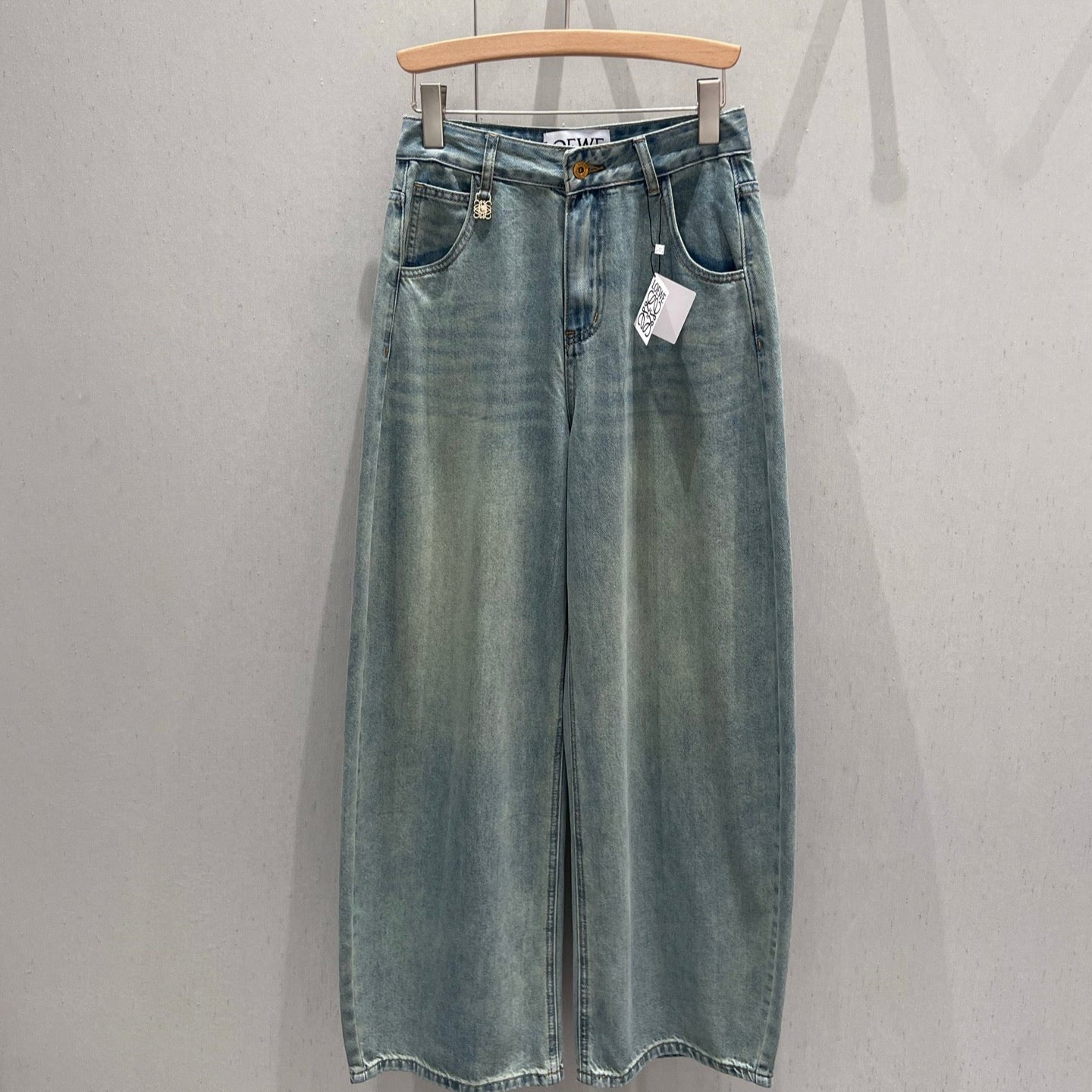 Loewe 25 Colorful Embroidered Scimitar Jeans Blue Cotton 217978