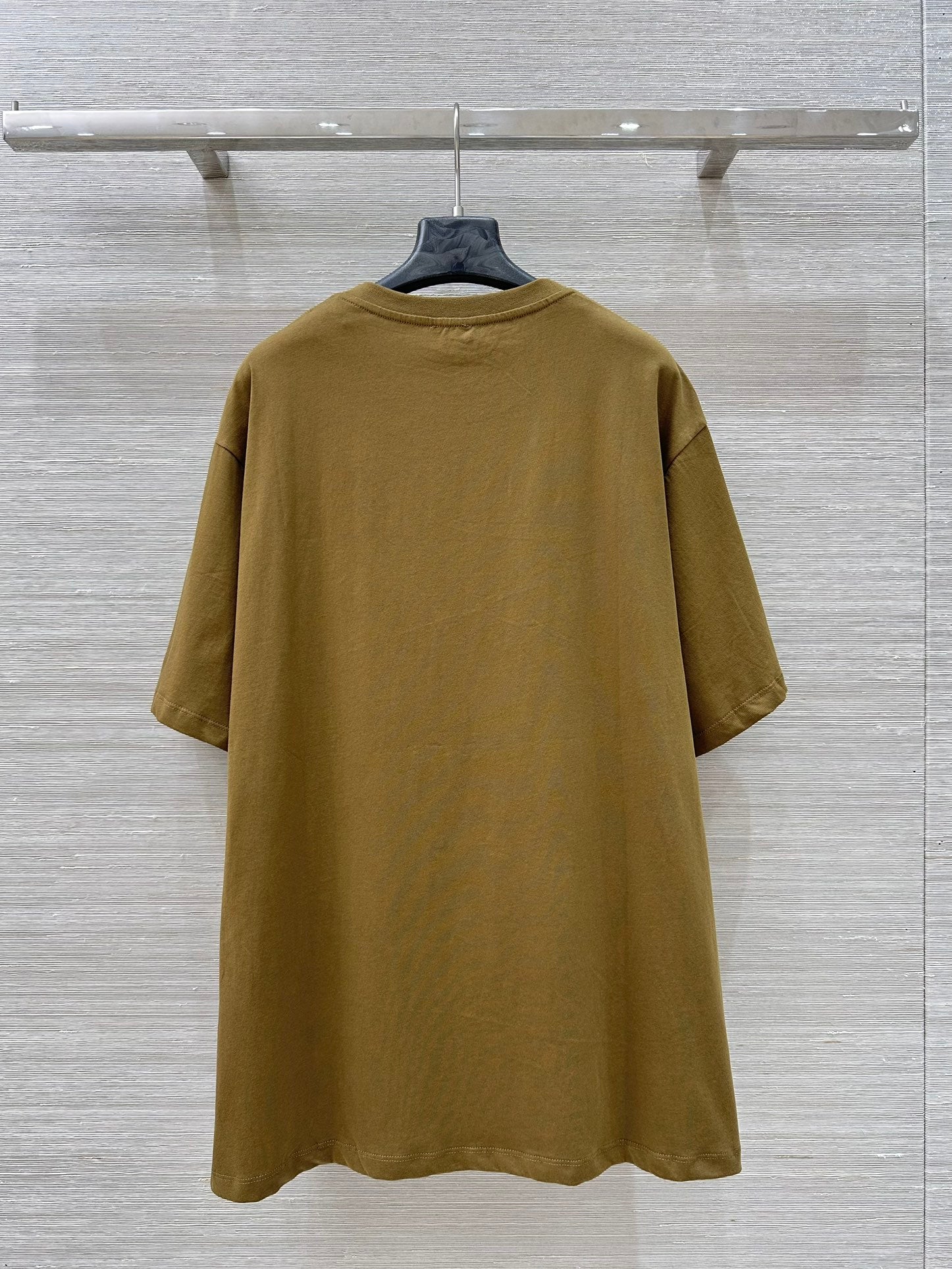 Loewe 25 Floral Embroidered Short-sleeved T-shirt Olive Brown Cotton