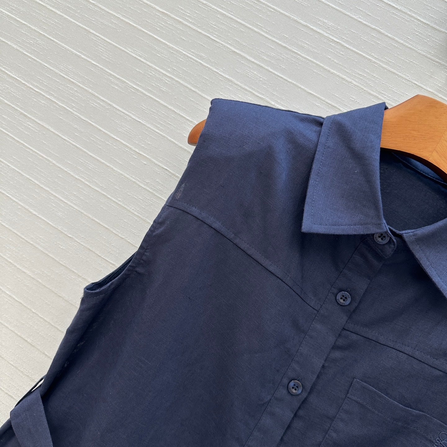 Loewe 25 Lace-up Waist Sleeveless Shirt Dark Blue Linen