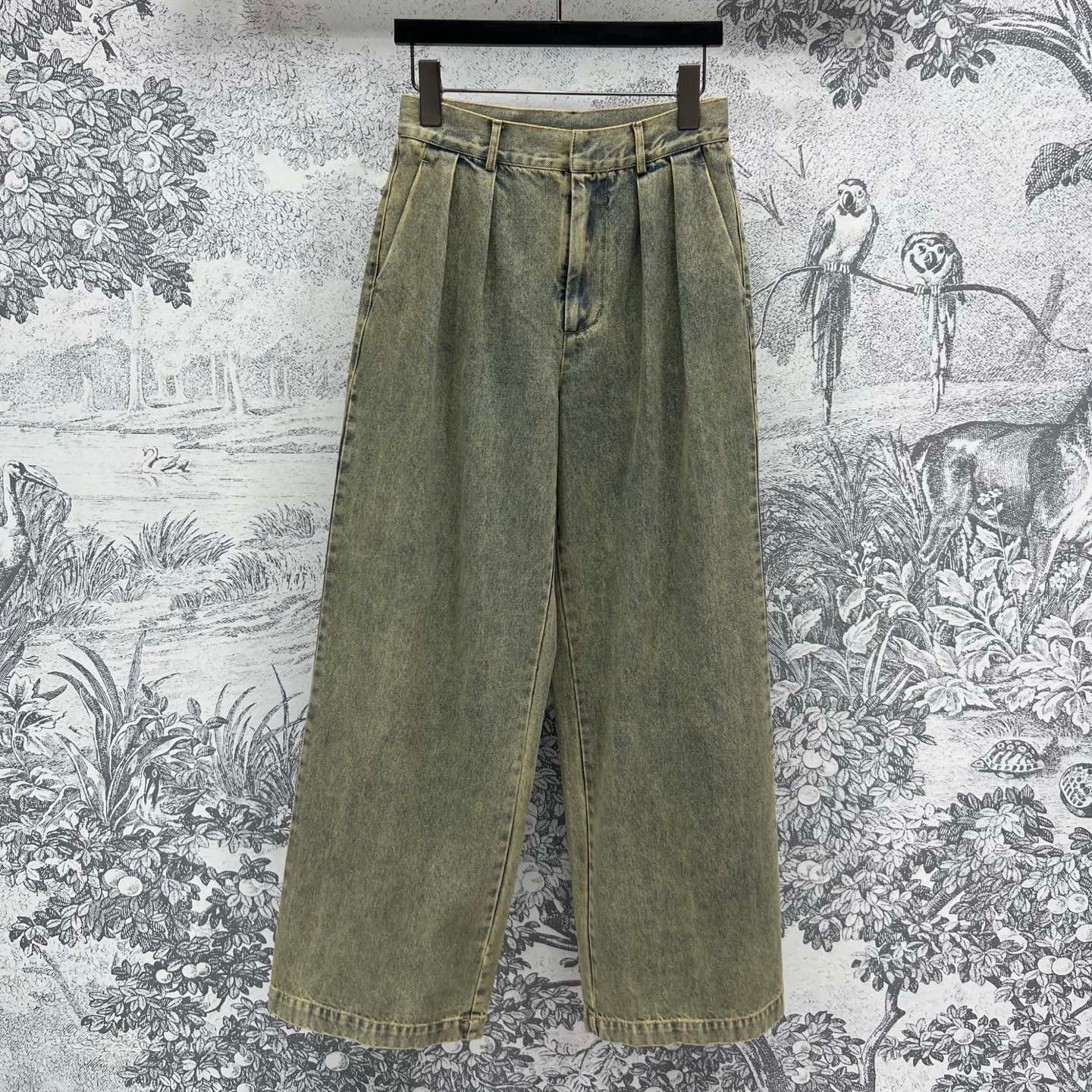 Loewe 25 Wide-leg Jeans Light Green-yellow Cotton
