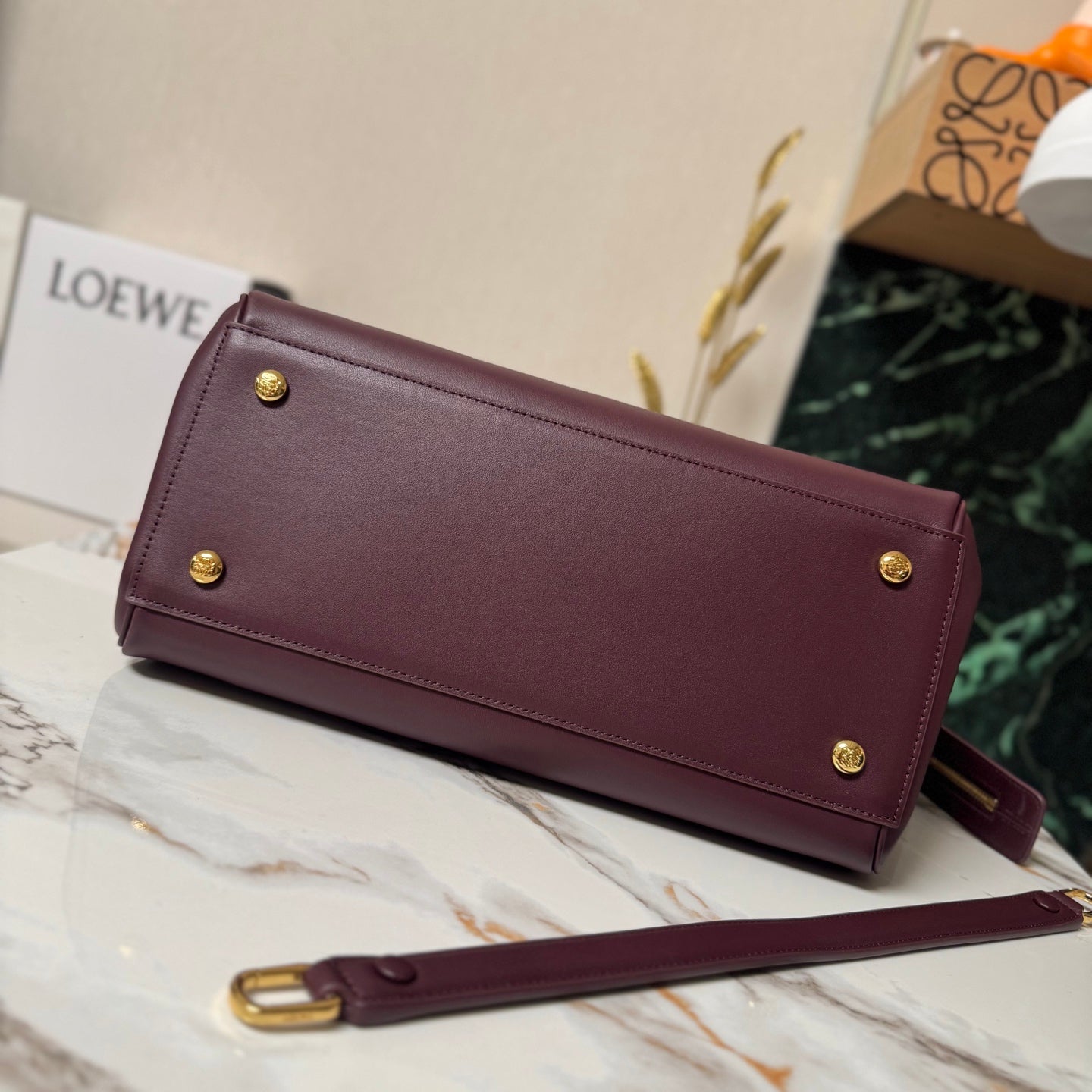LOEWE 25S LARGE MADRID BAG 33 IN DARK WINE CALFSKIN GOLD HARDWARE