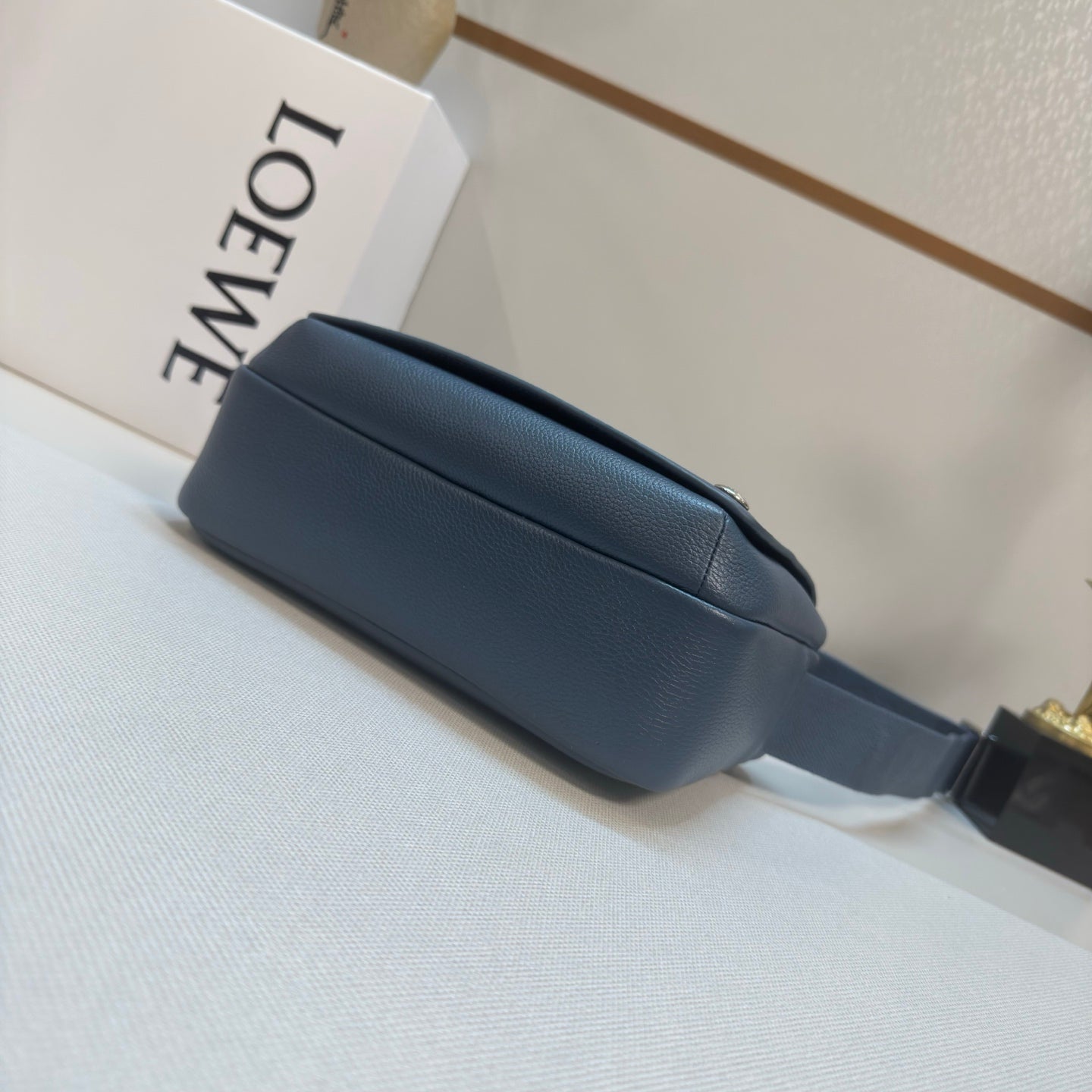 LOEWE 25S PEBBLE BAG 23 IN STEEL BLUE CALFSKIN SILVER HARDWARE