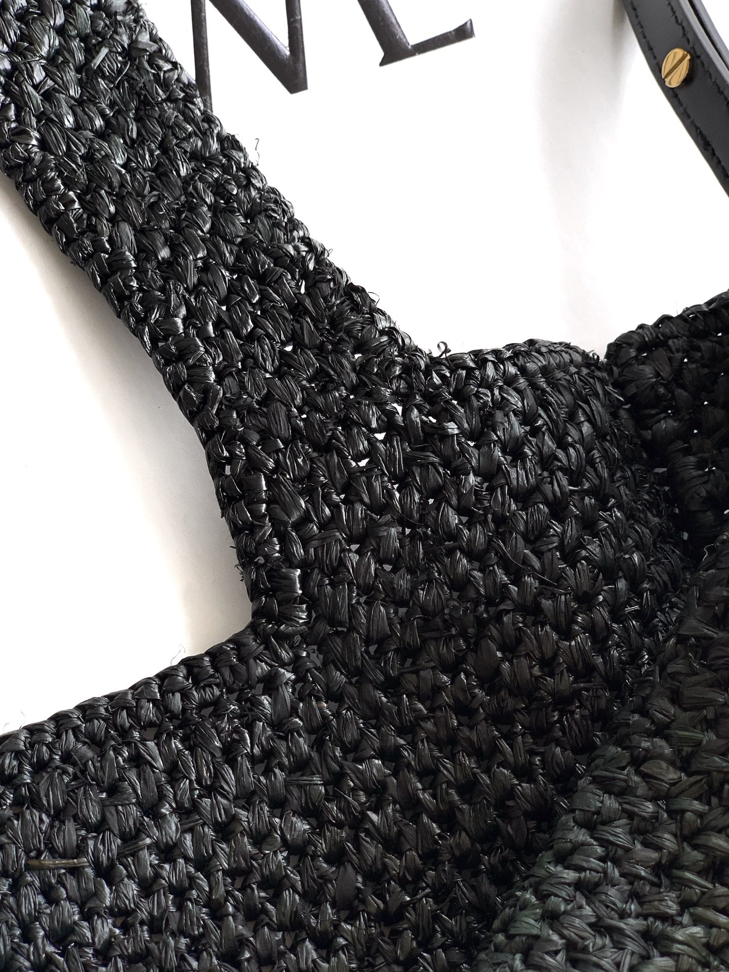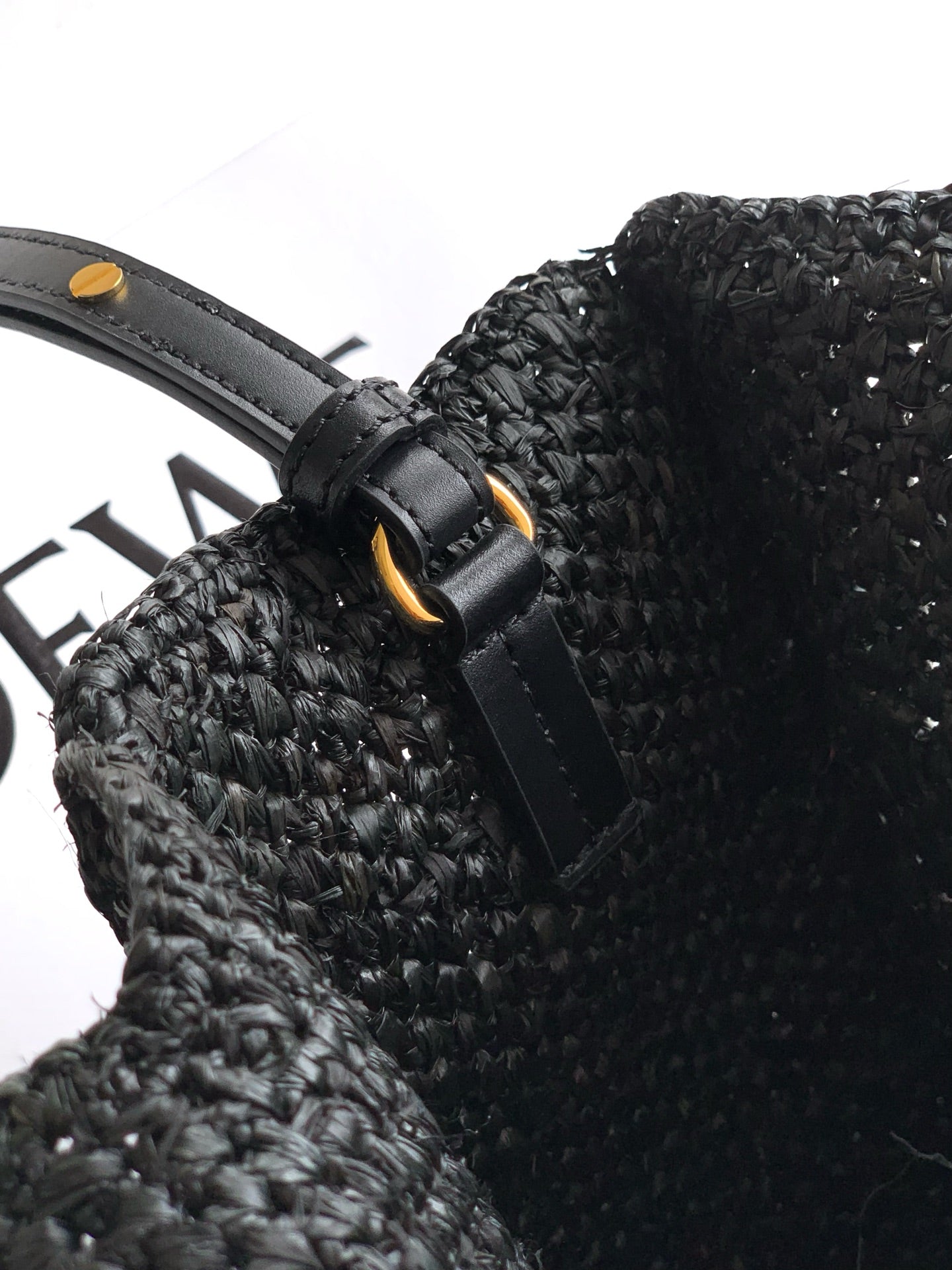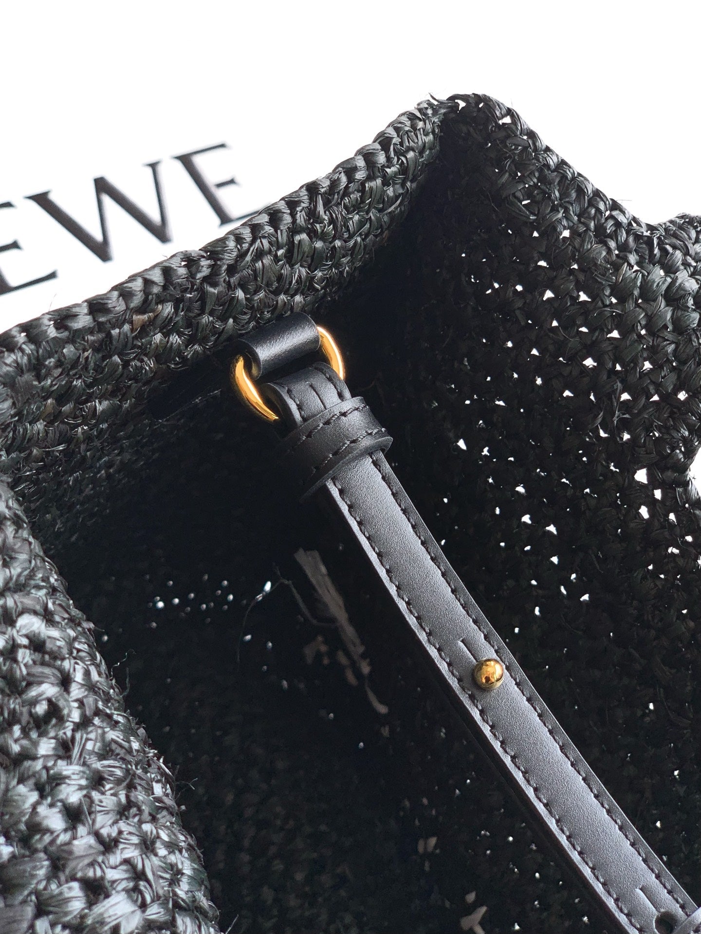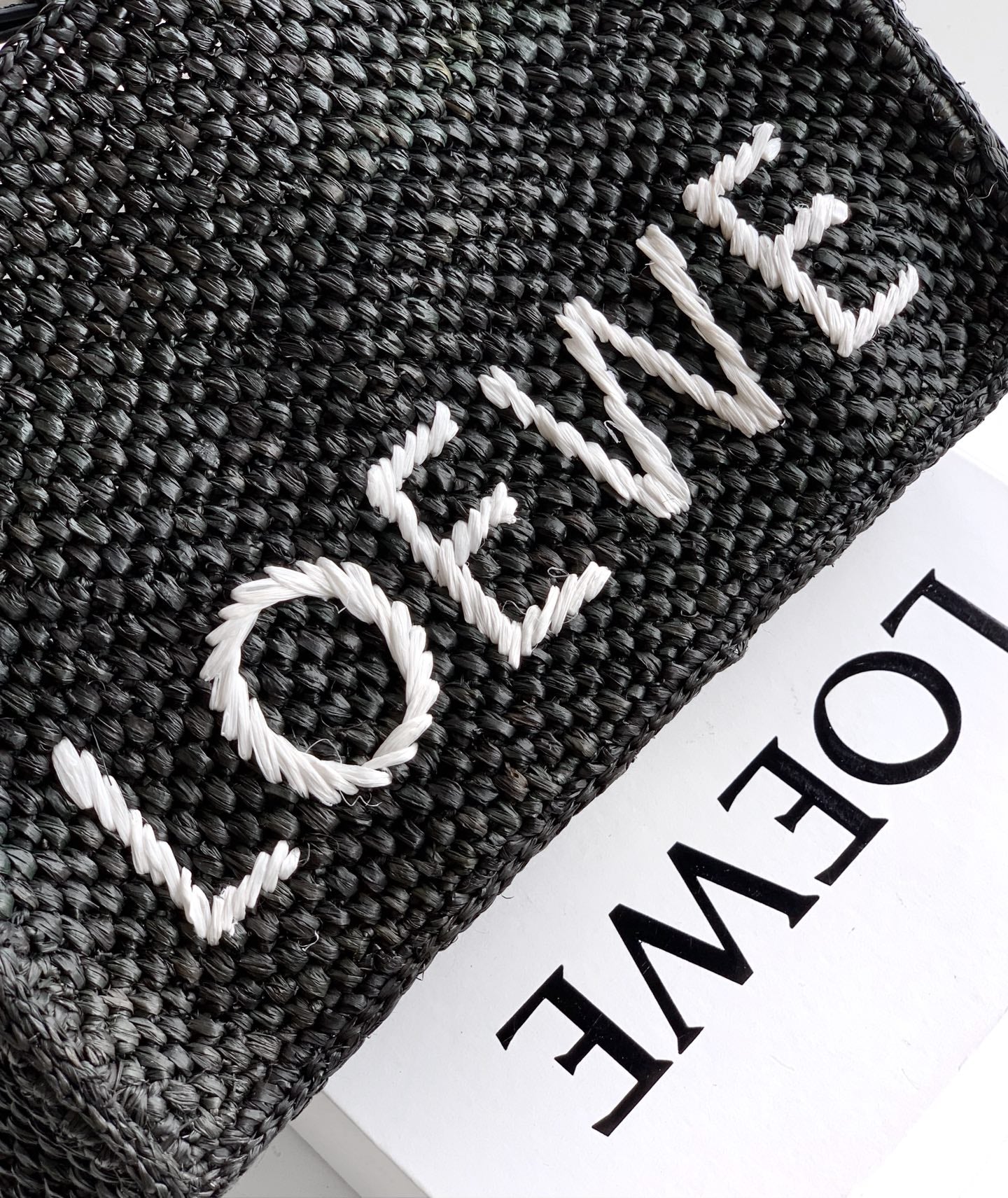 LOEWE 25S WE FONT TOTE BAG 24 IN BLACK RAFFIA FIBER