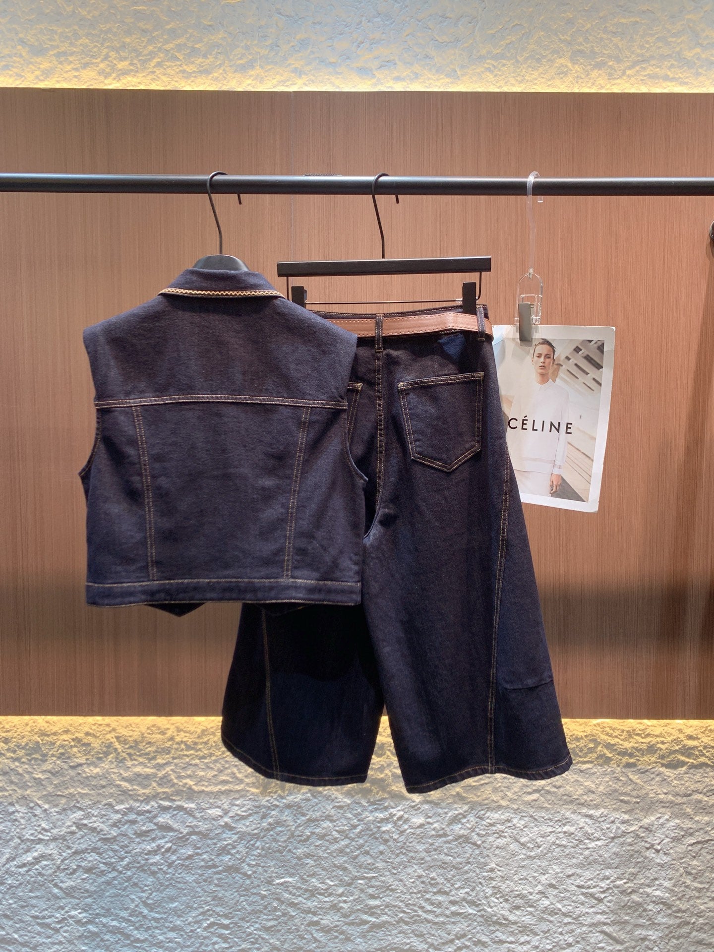 LOEWE SLEEVELESS TOP & DENIM SHORTS SET STYLE 72