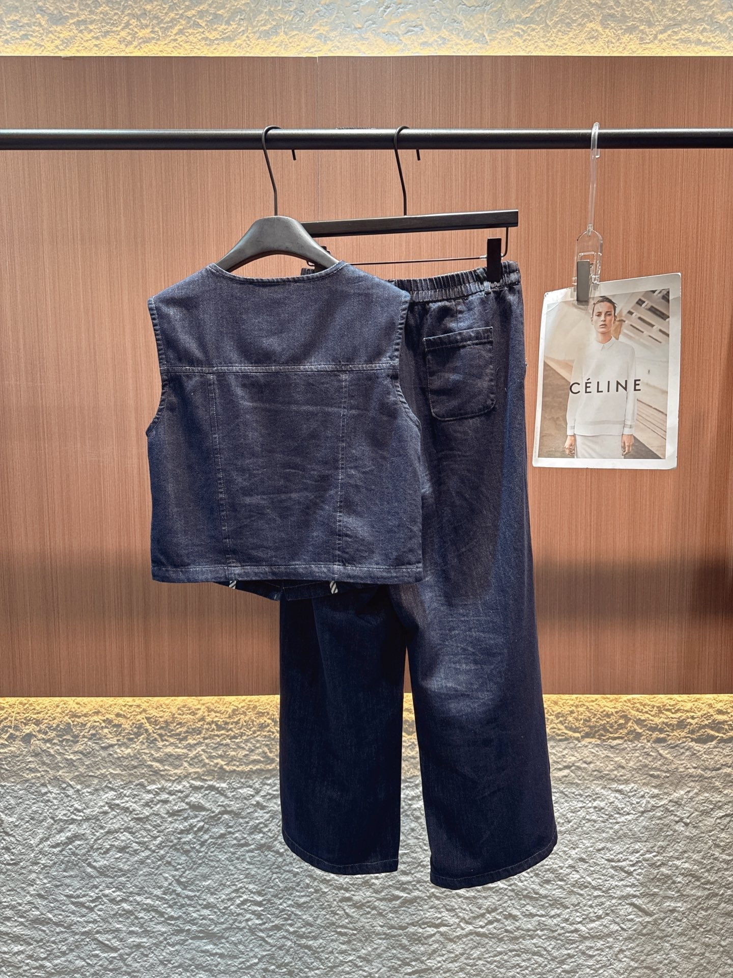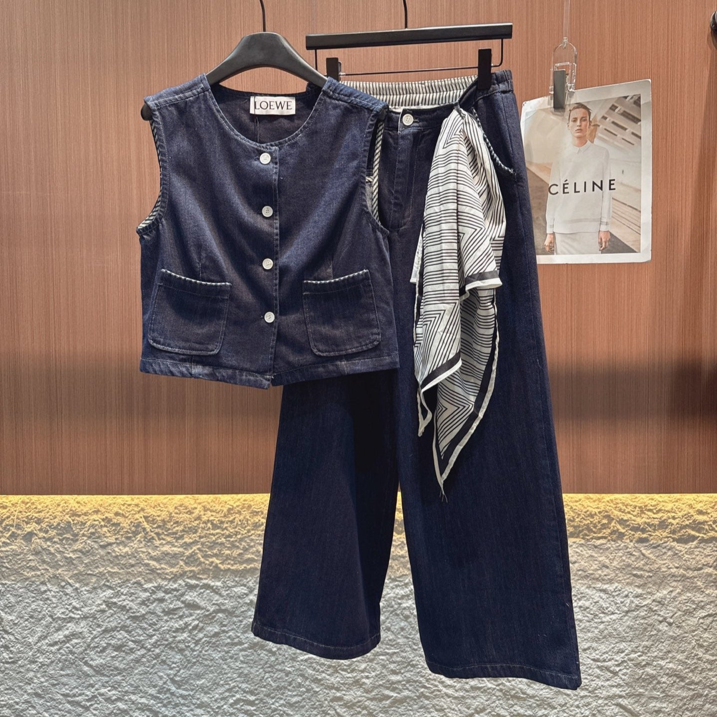 LOEWE SLEEVELESS TOP & STRAIGHT-LEG DENIM PANTS SET STYLE 73