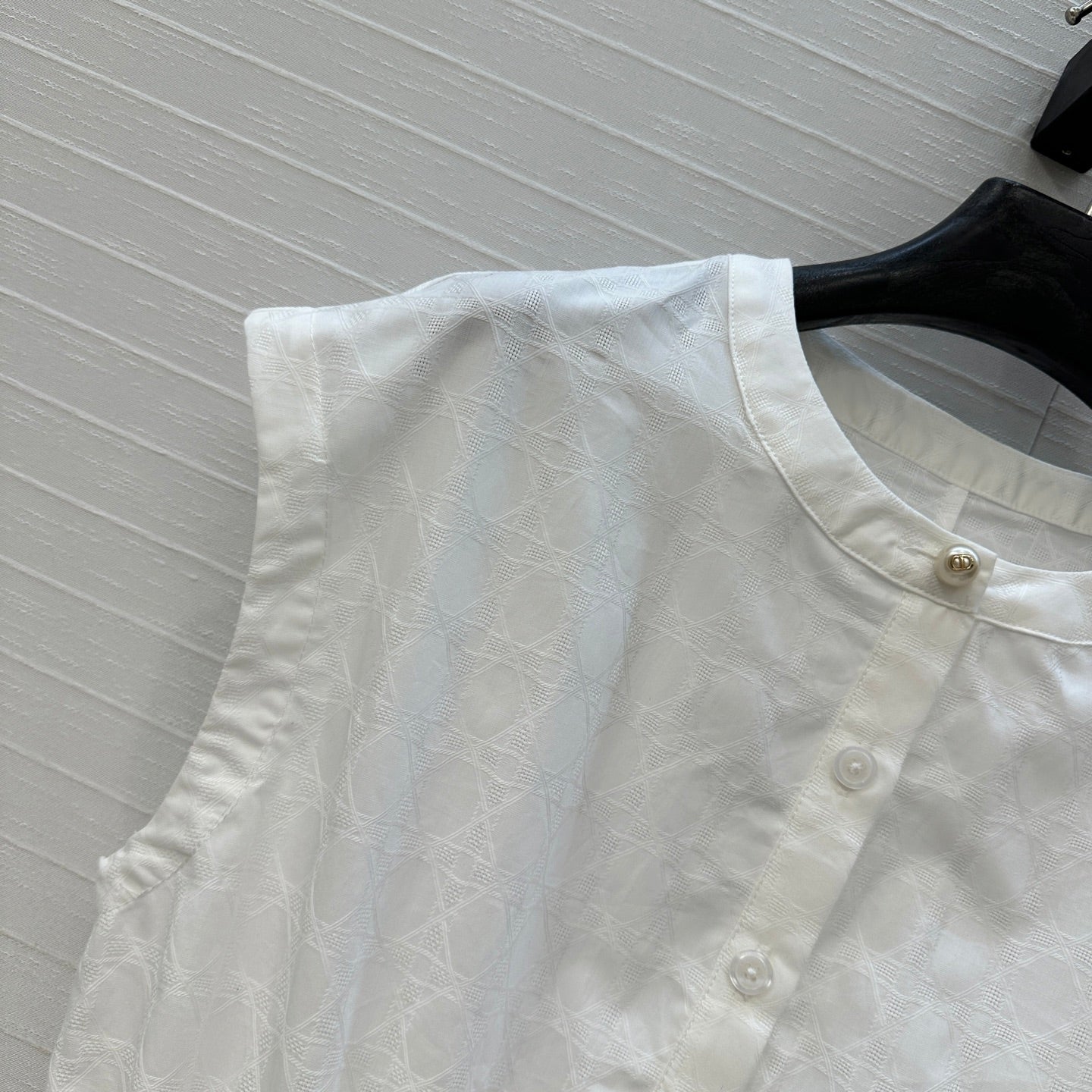 DIOR WHITE SLEEVELESS TOP WITH RUCHED WAIST