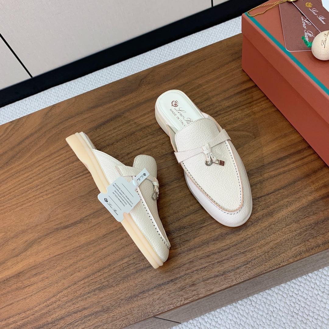 LP FLAT MULES 25S IN CREAM WHITE LAMBSKIN WITH SILVER HARDWARE