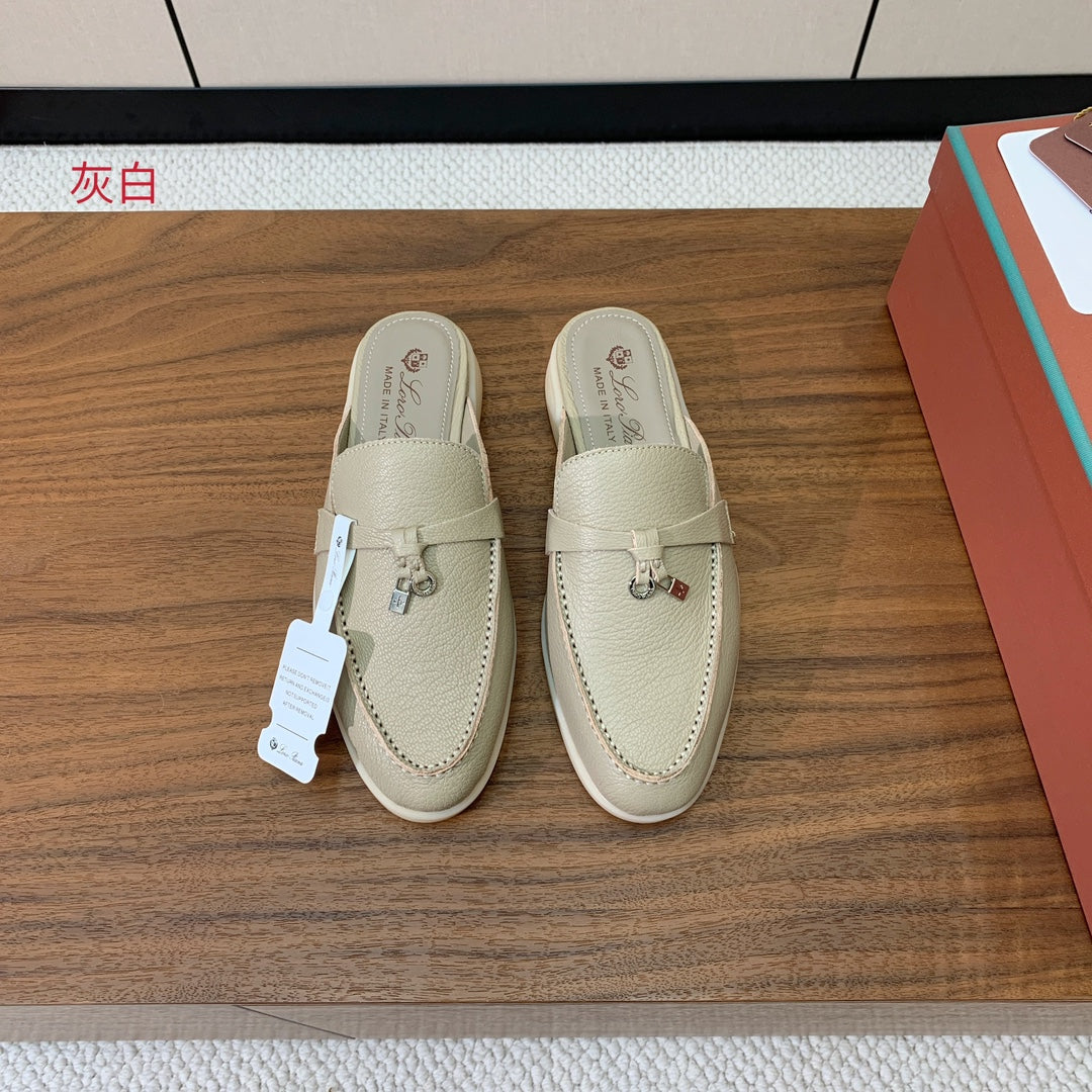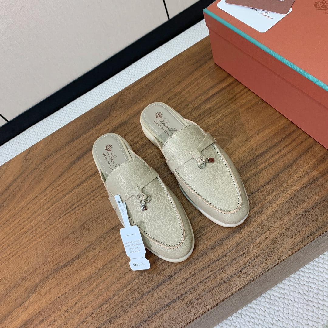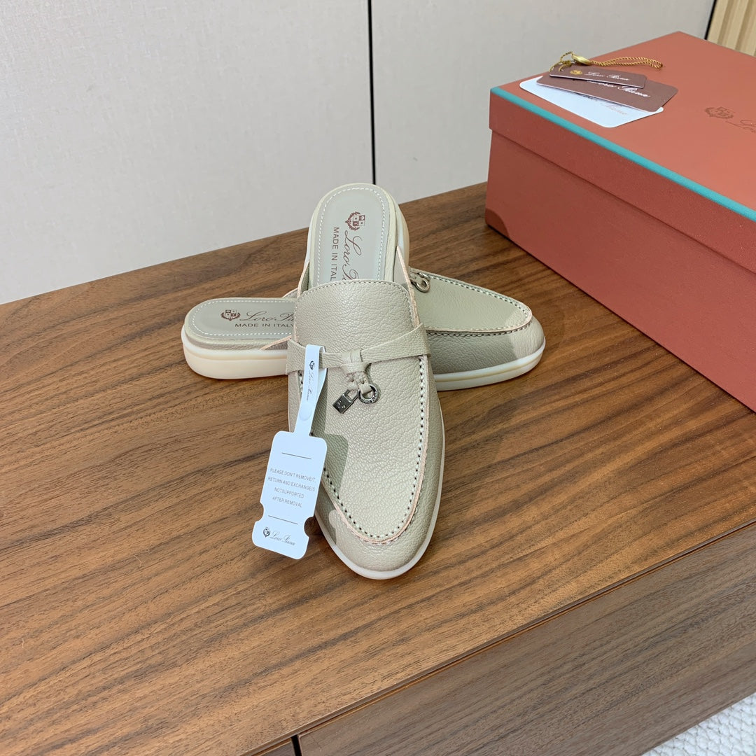 LP FLAT MULES 25S IN MOSS GRAY LAMBSKIN WITH SILVER HARDWARE