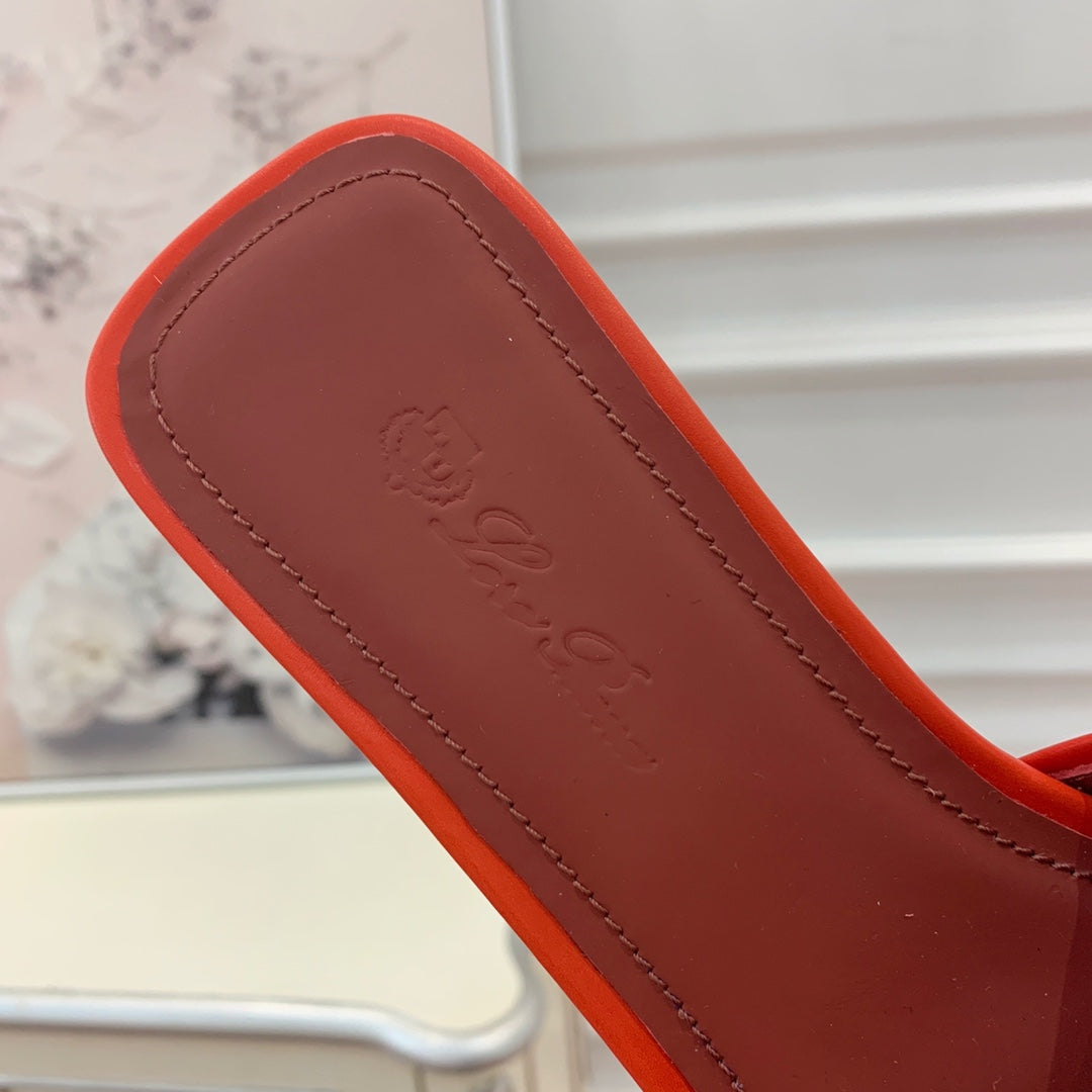 LP RAFFIA CHARMS FLATS SANDAL ORANGE AND WHITE CALFSKIN