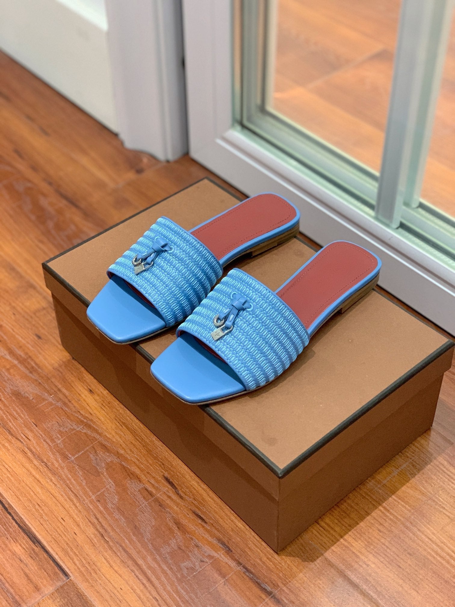 LP RAFFIA CHARMS FLATS SANDAL SKY CALFSKIN