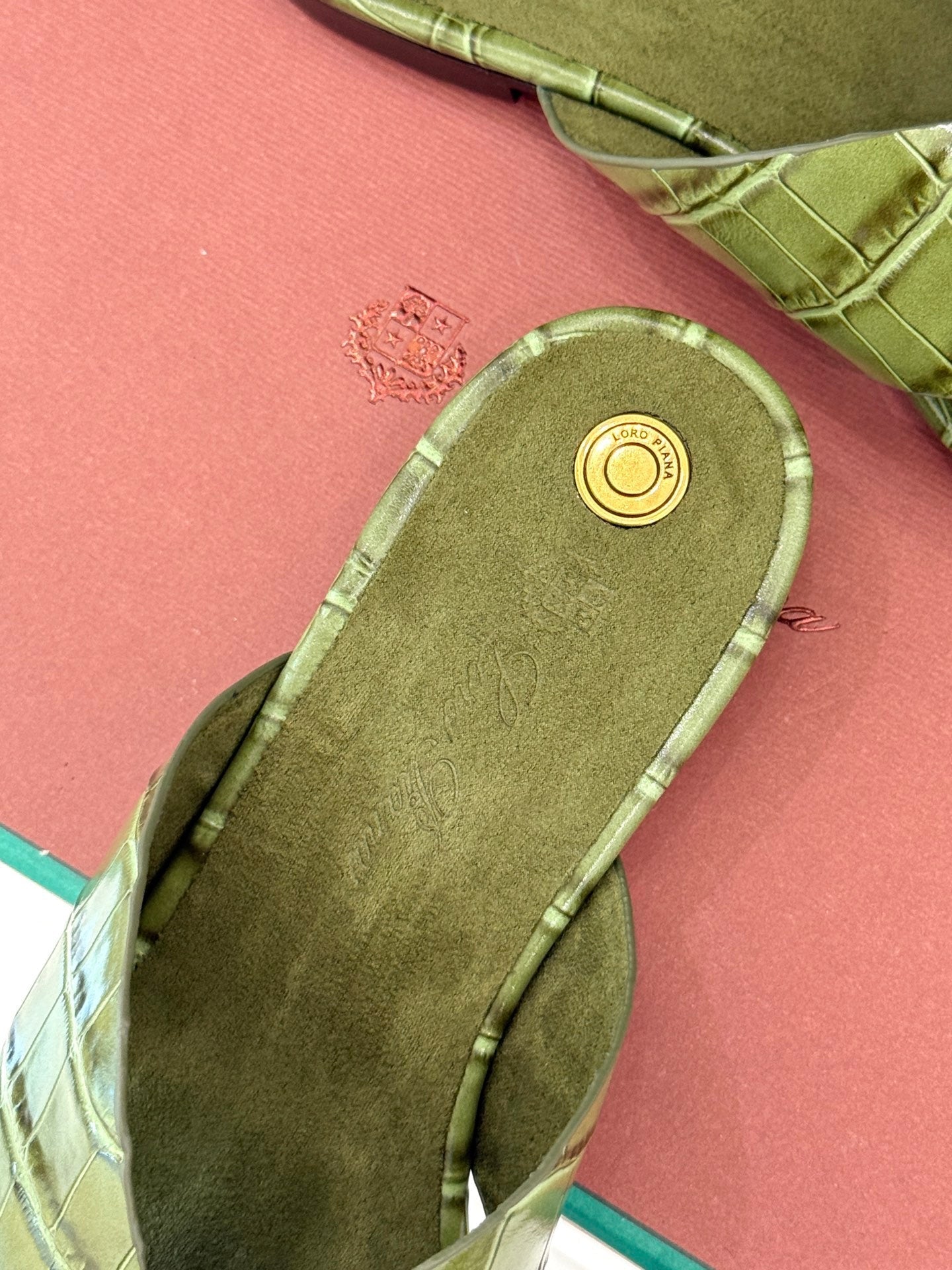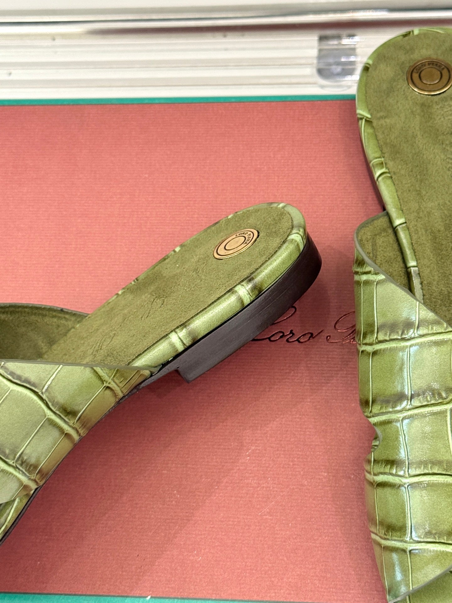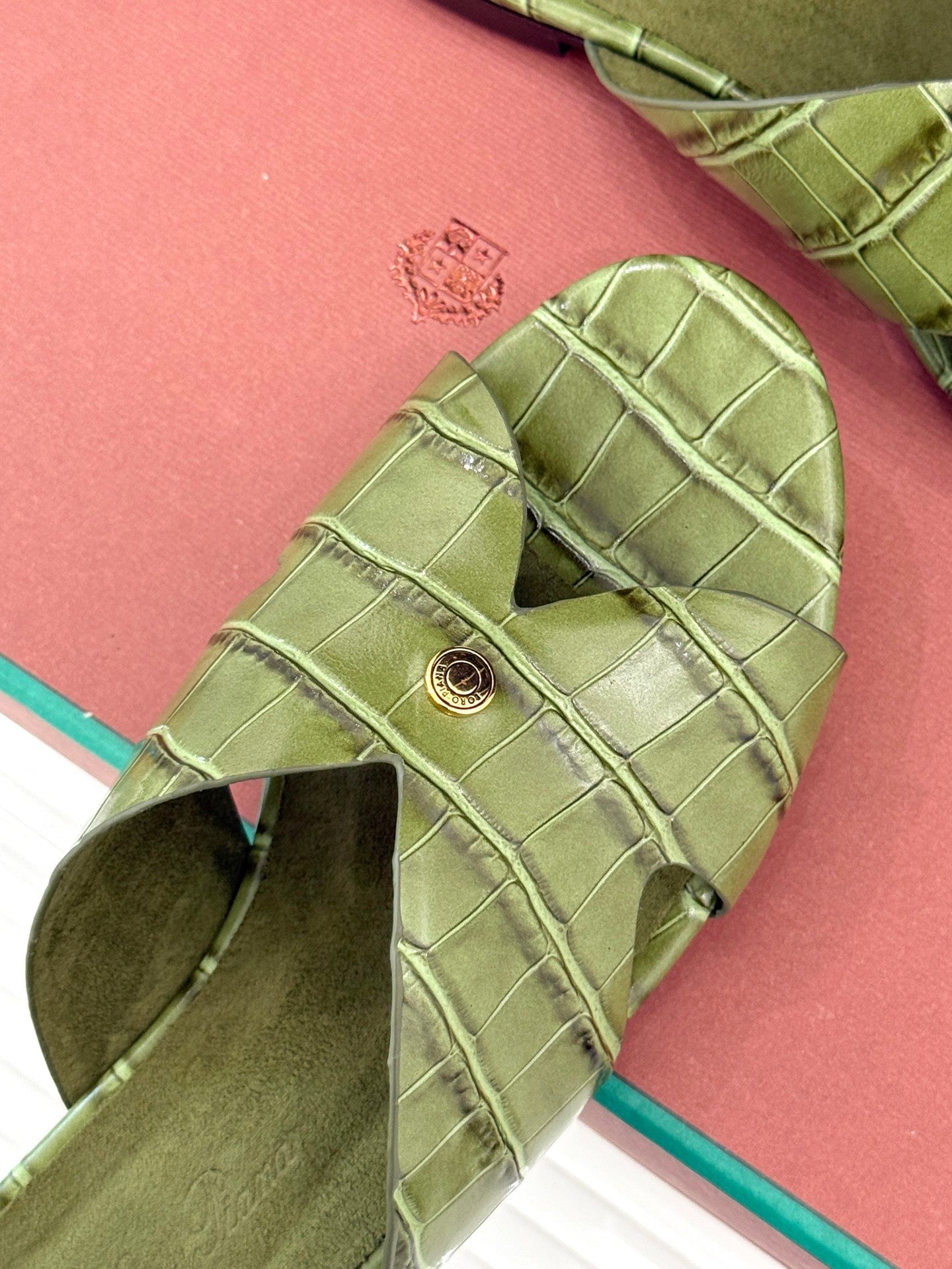 LP SANDALS 25S IN MOSS GREEN LAMBSKIN SNAKE EMBOSSING