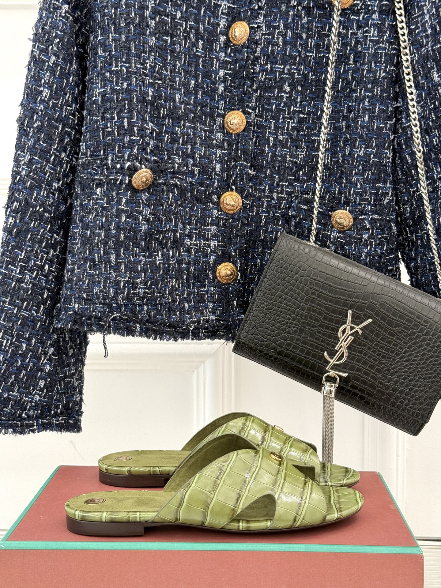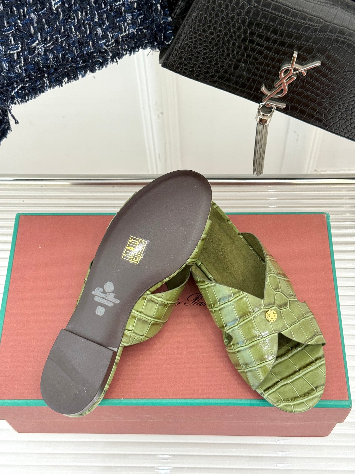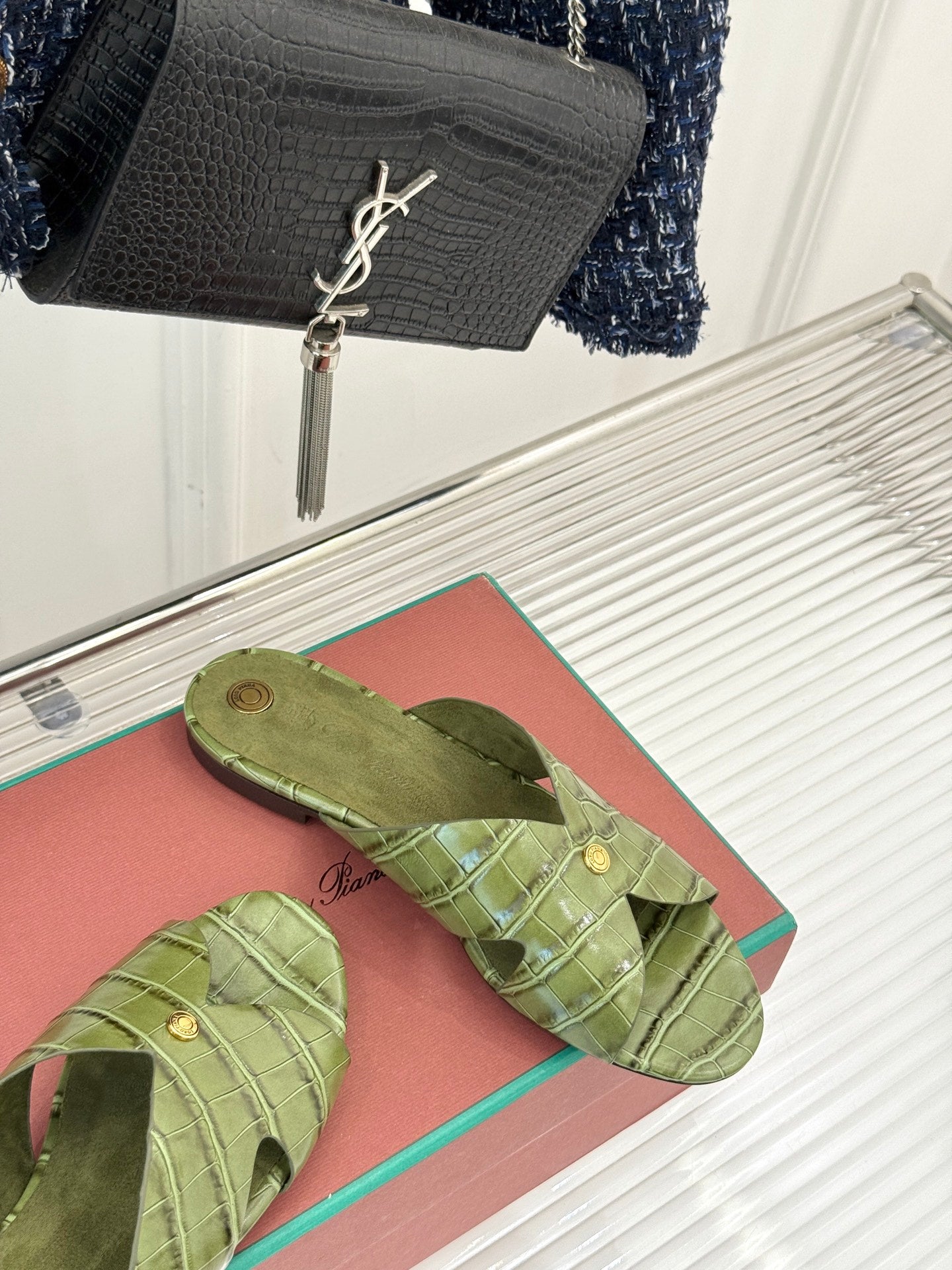 LP SANDALS 25S IN MOSS GREEN LAMBSKIN SNAKE EMBOSSING
