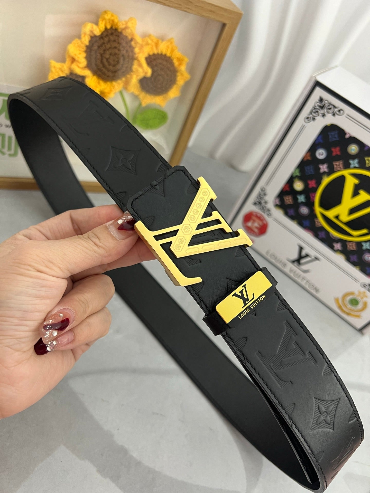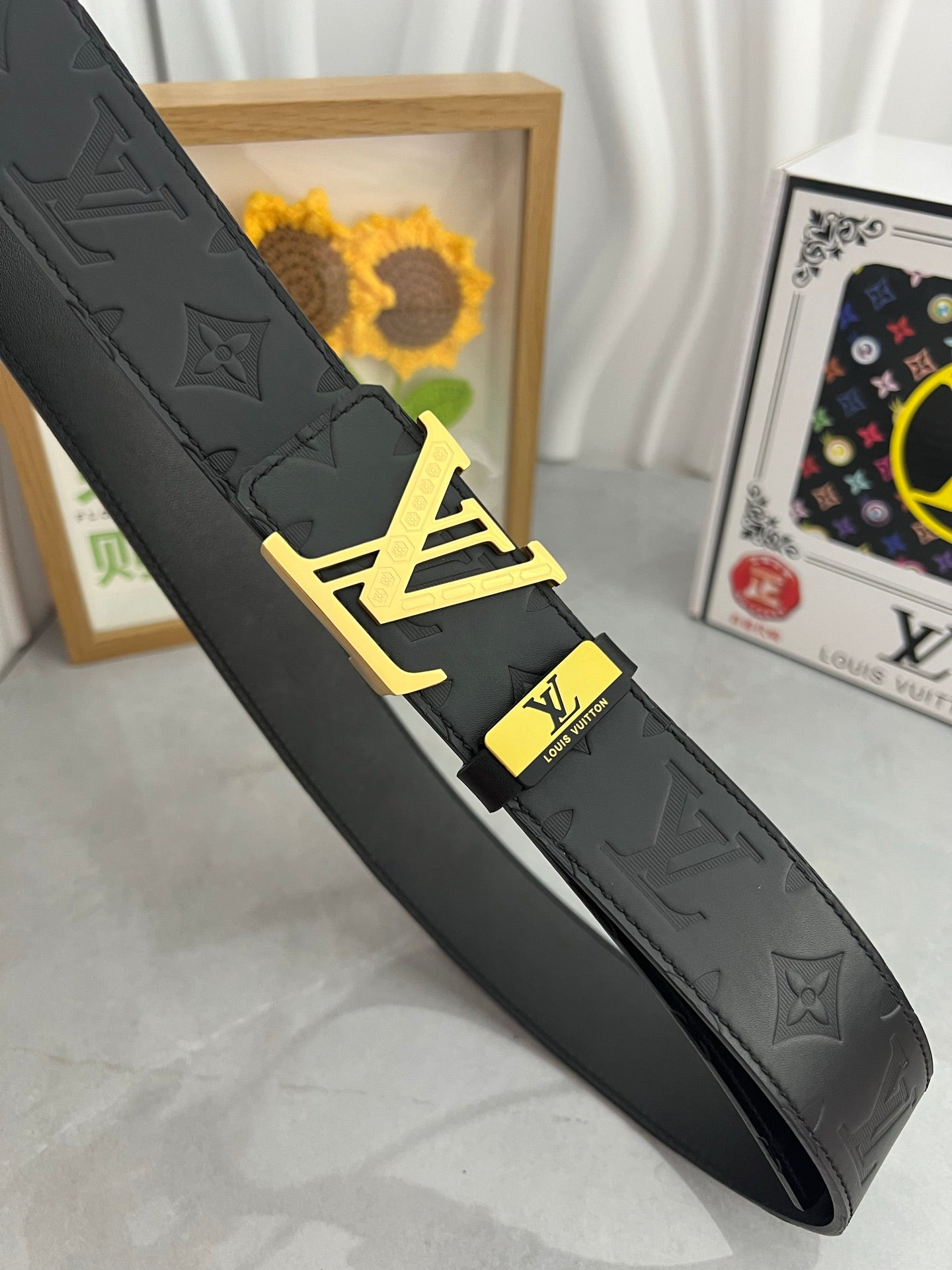 LV 25S BELT 38 MM IN BLACK CALFSKIN 593277