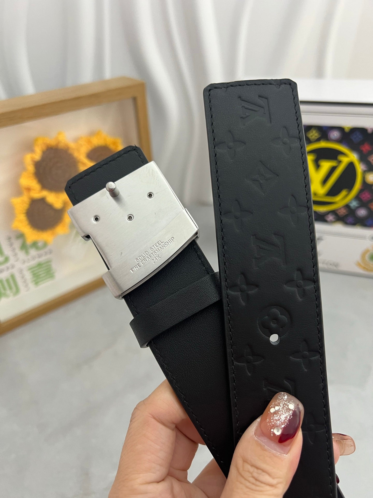 LV 25S BELT 38 MM IN BLACK CALFSKIN 593278