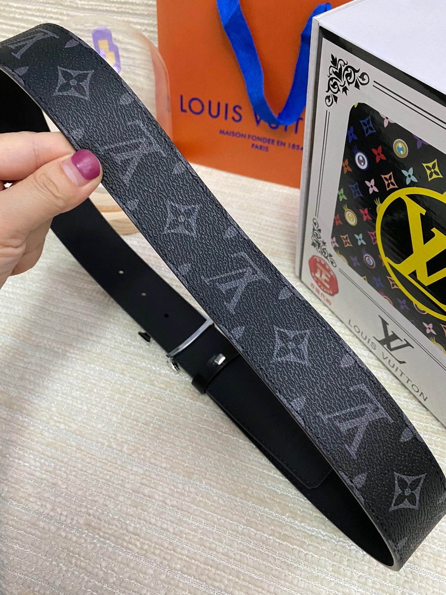 LV 25S BELT 38 MM IN BLACK CALFSKIN PRINT PATTERNS 593287