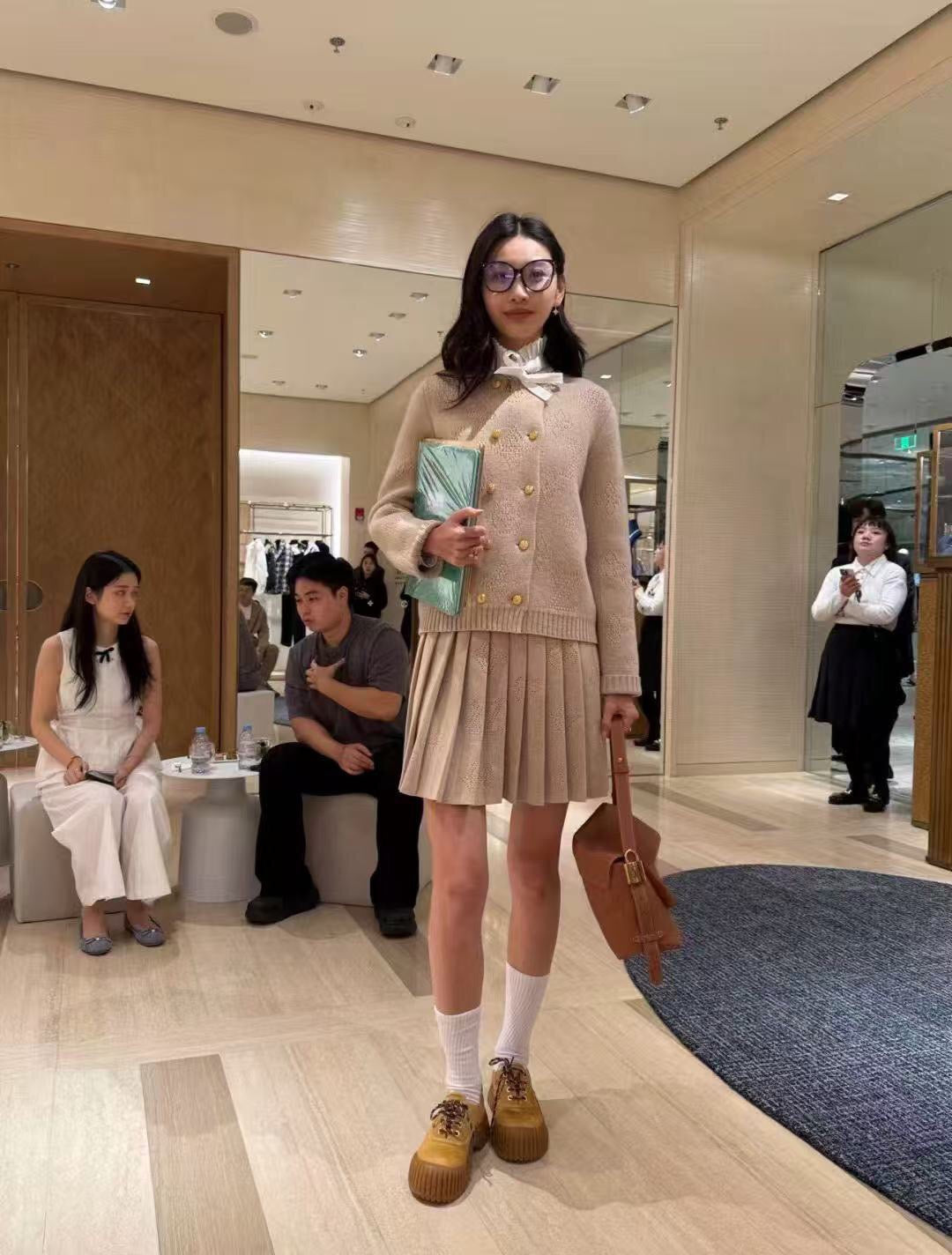 LV 25S KNIT CARDIGAN AND PLEATED KNIT MINI SKIRT SET 0108