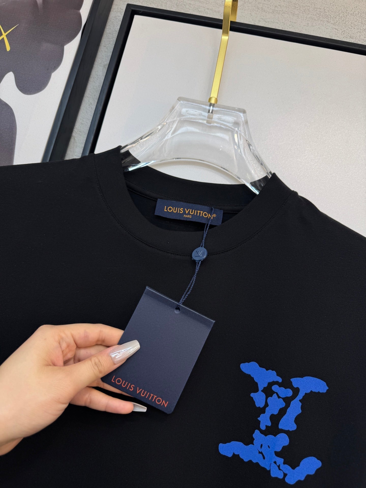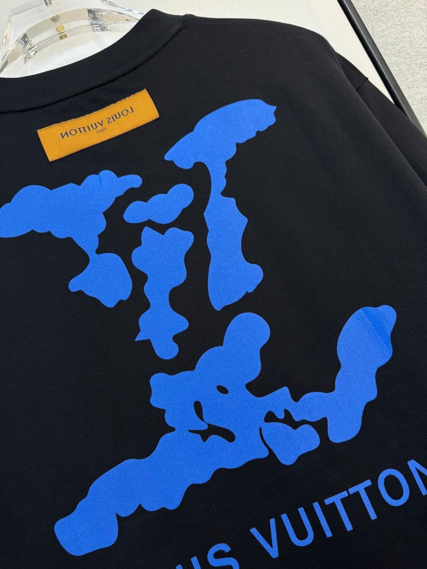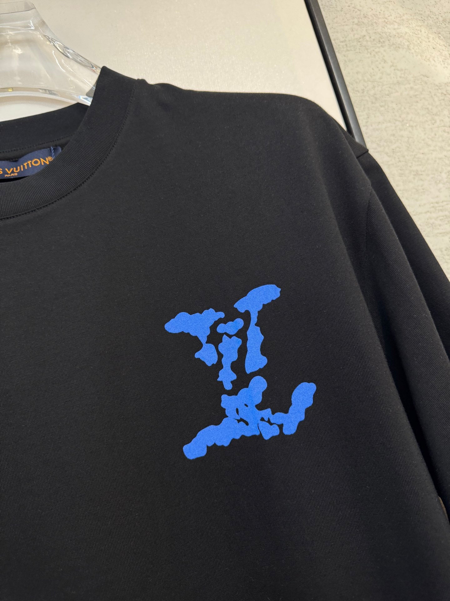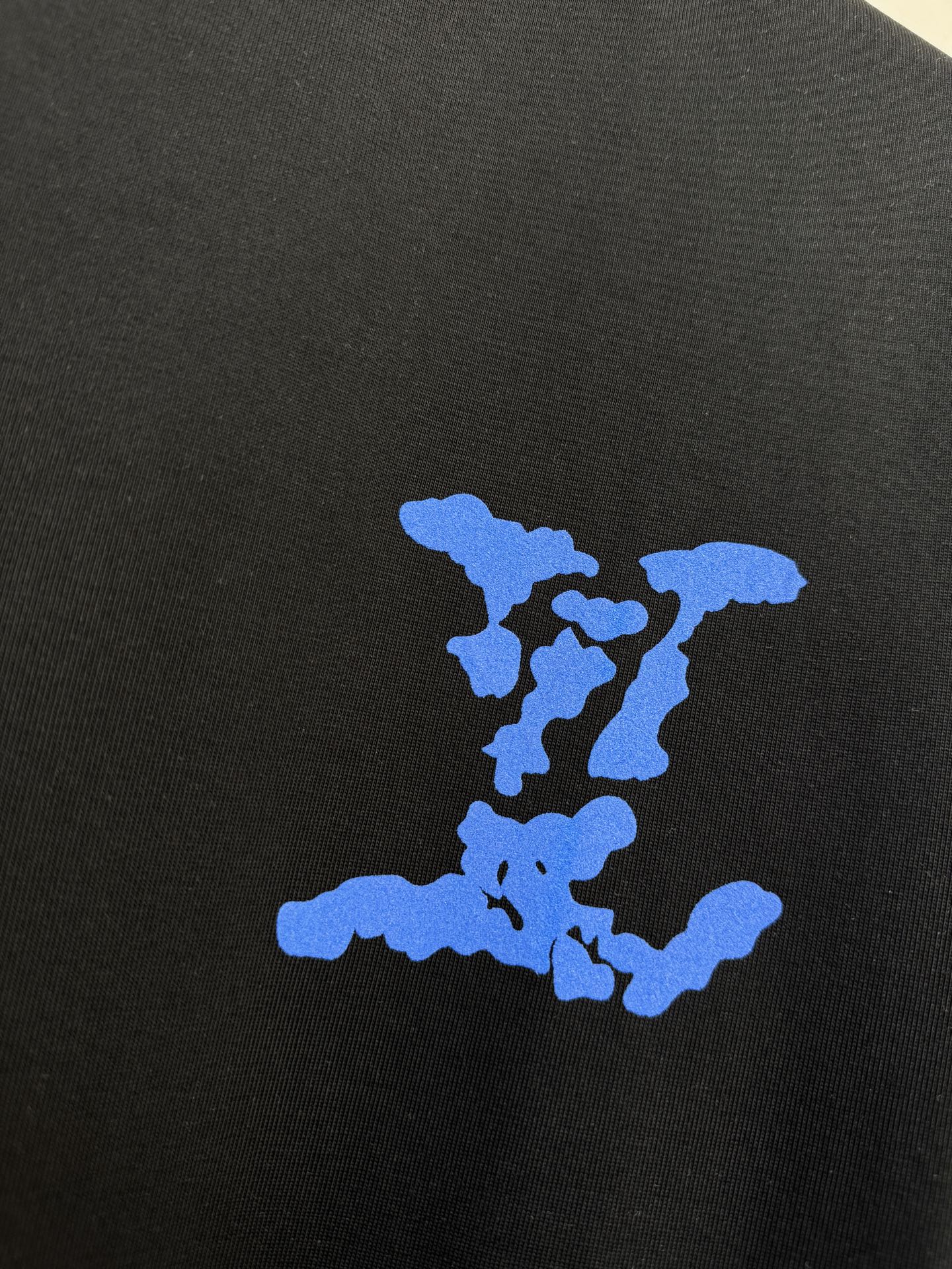 LV BLACK COTTON T-SHIRT BLUE STYLIZED LOGO 238916