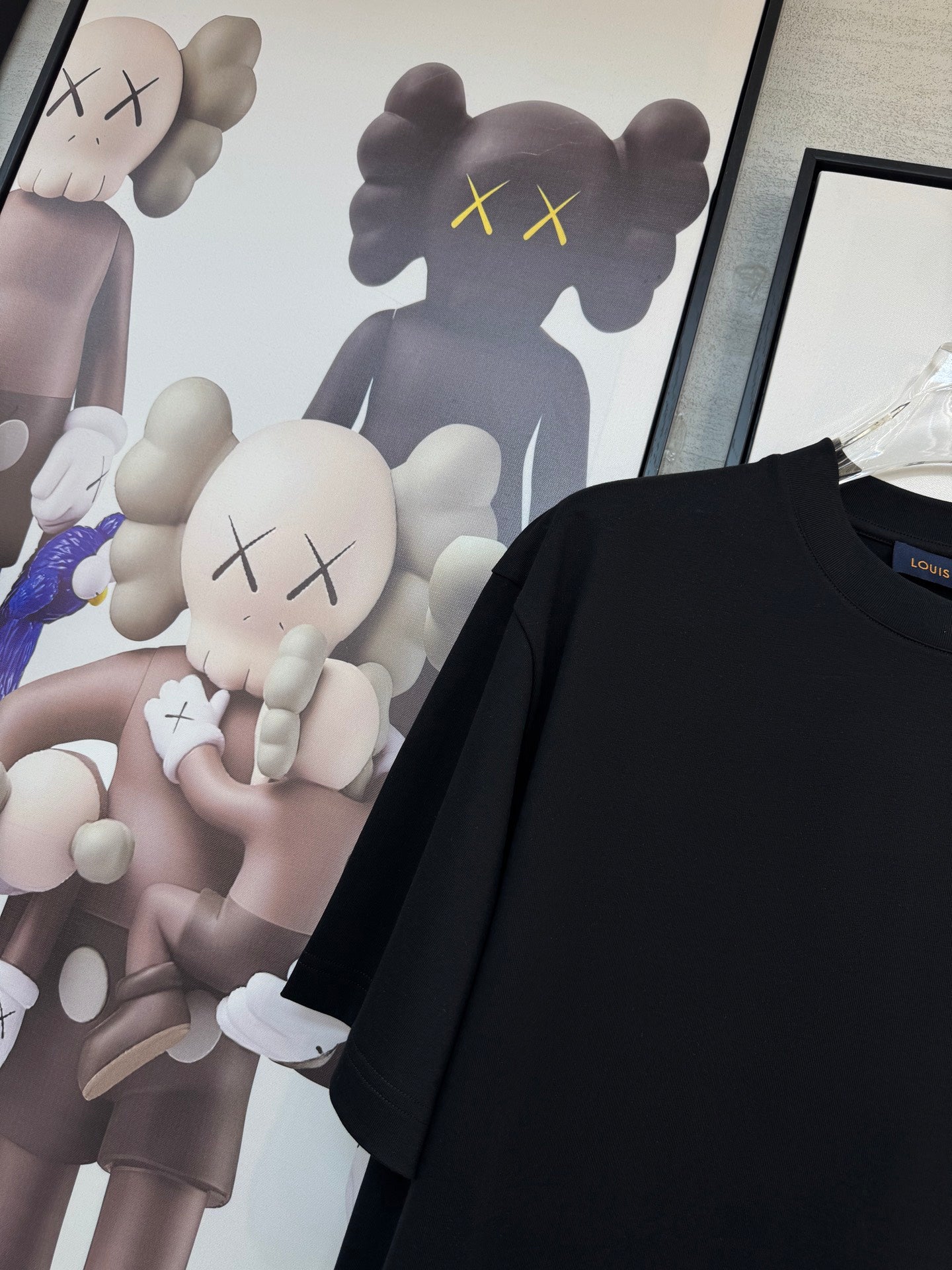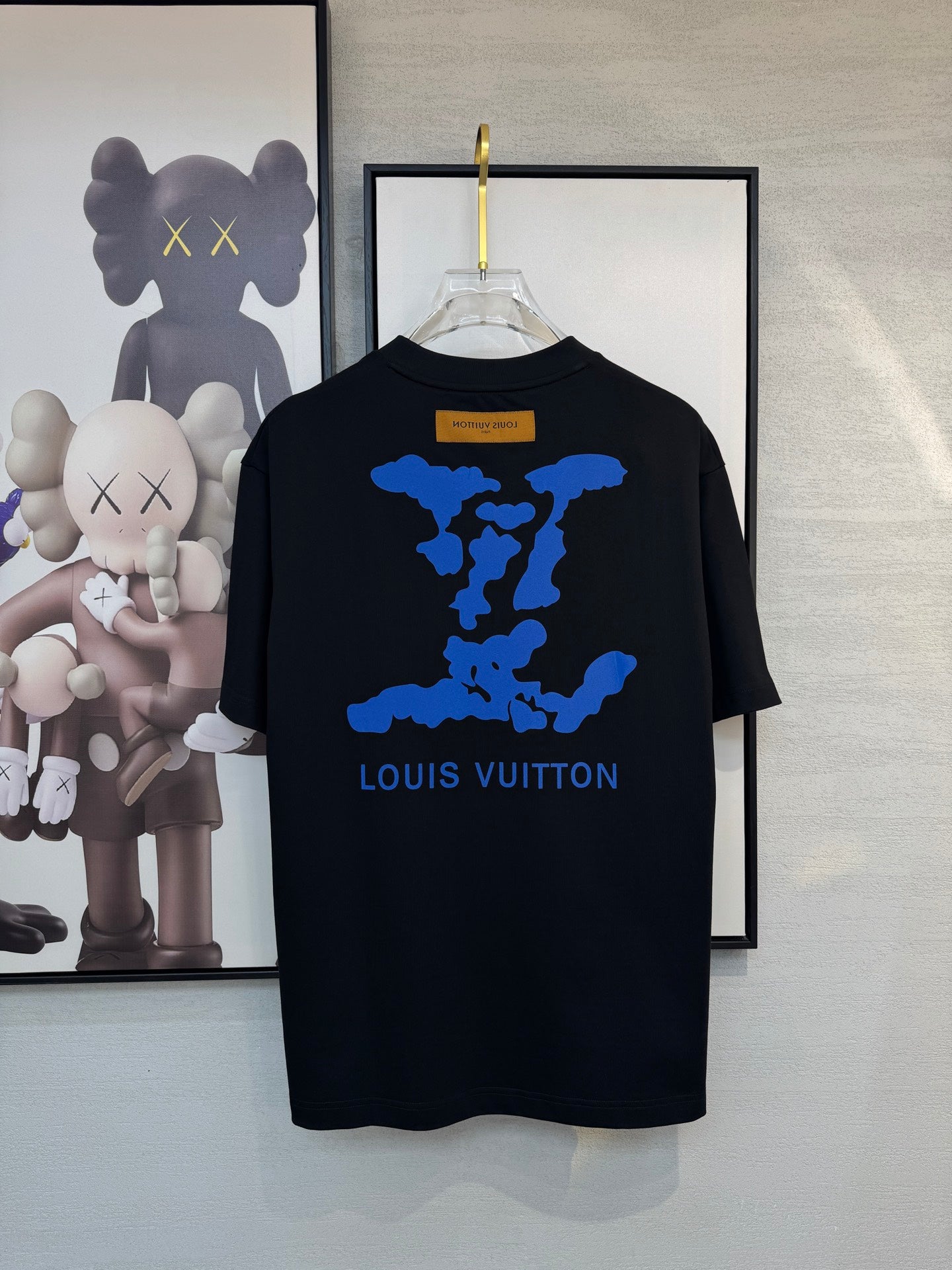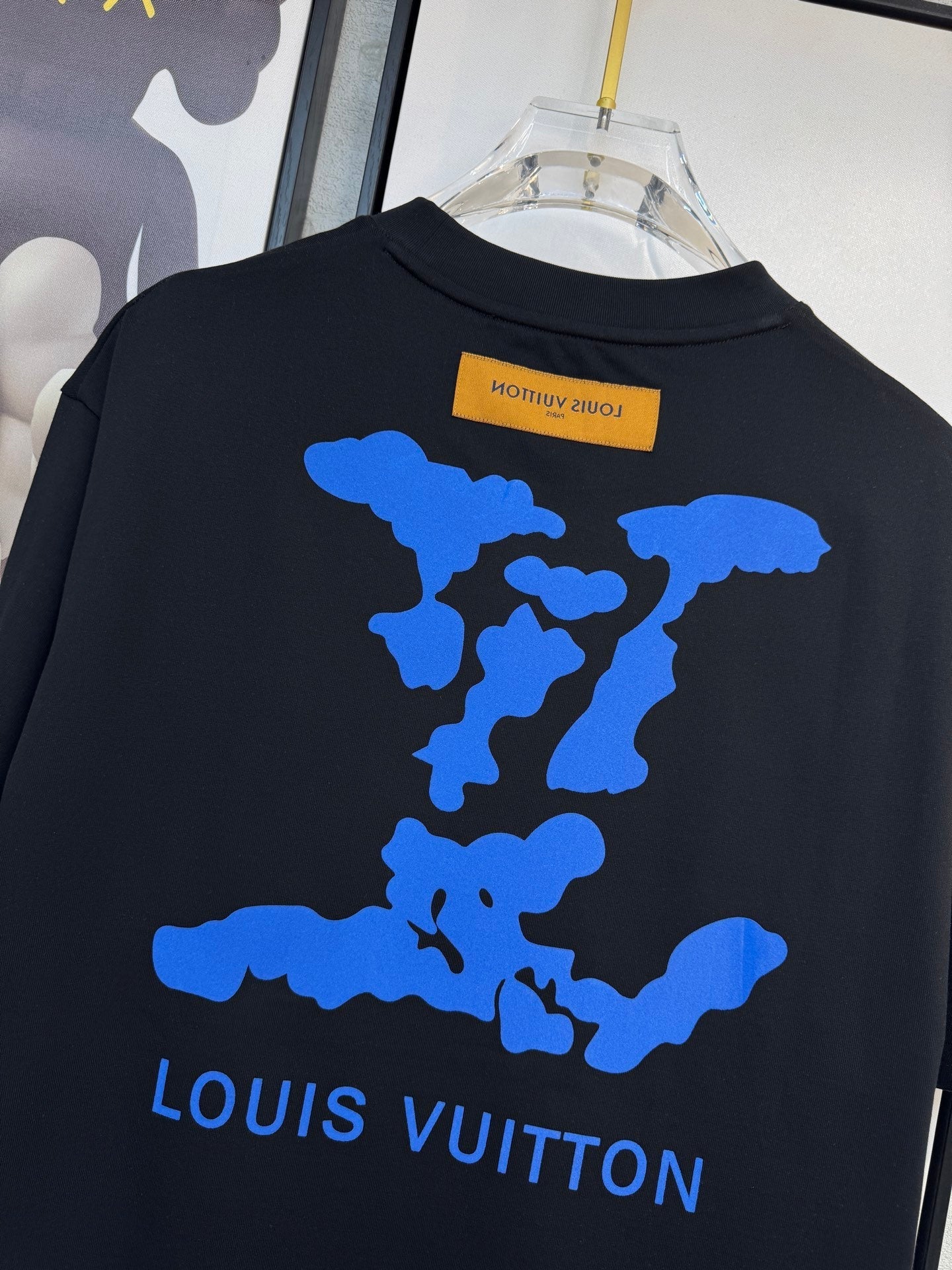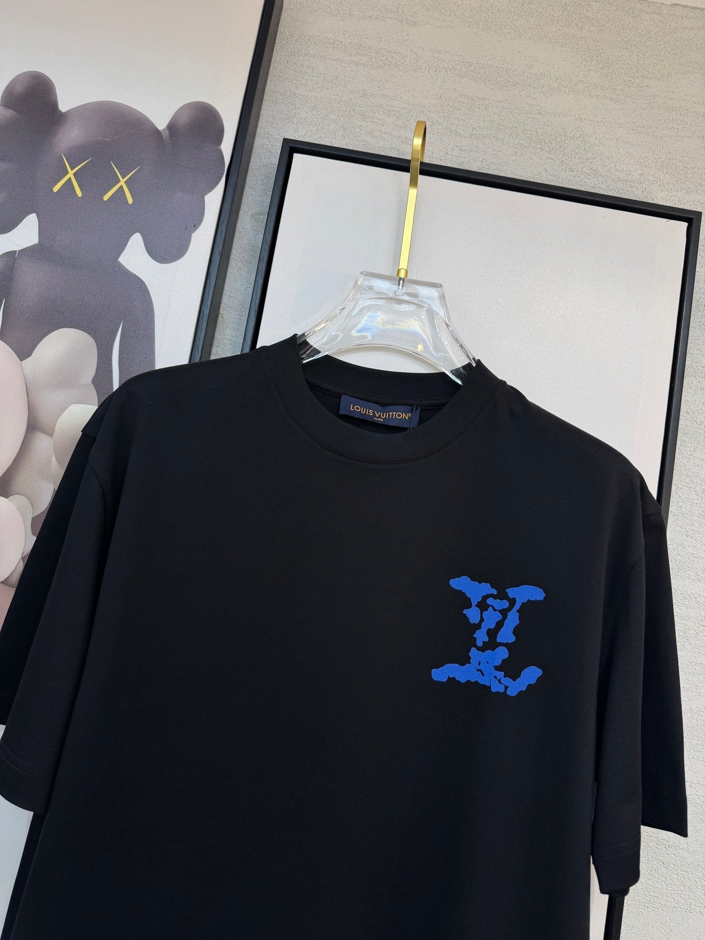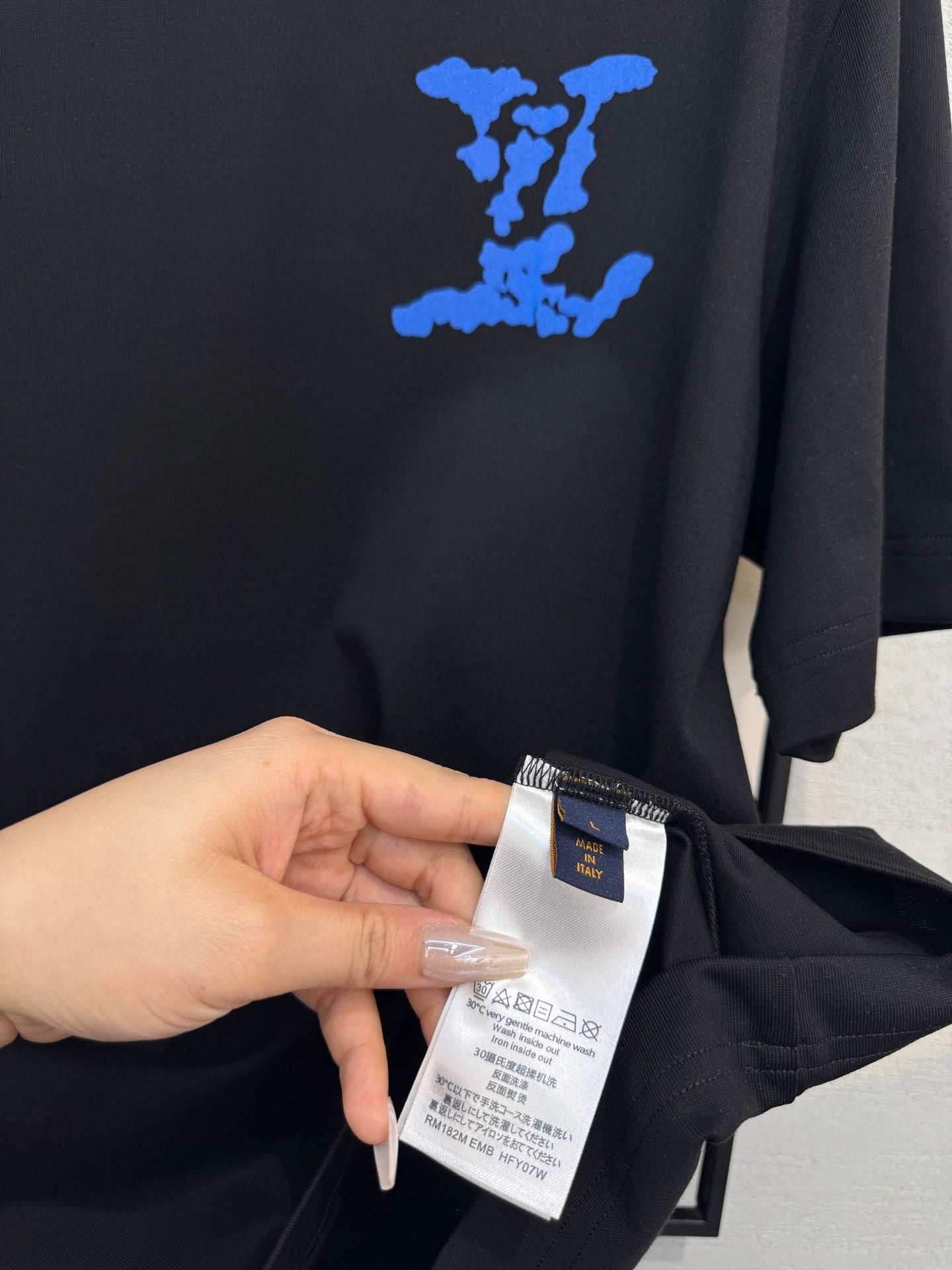 LV BLACK COTTON T-SHIRT BLUE STYLIZED LOGO 238916