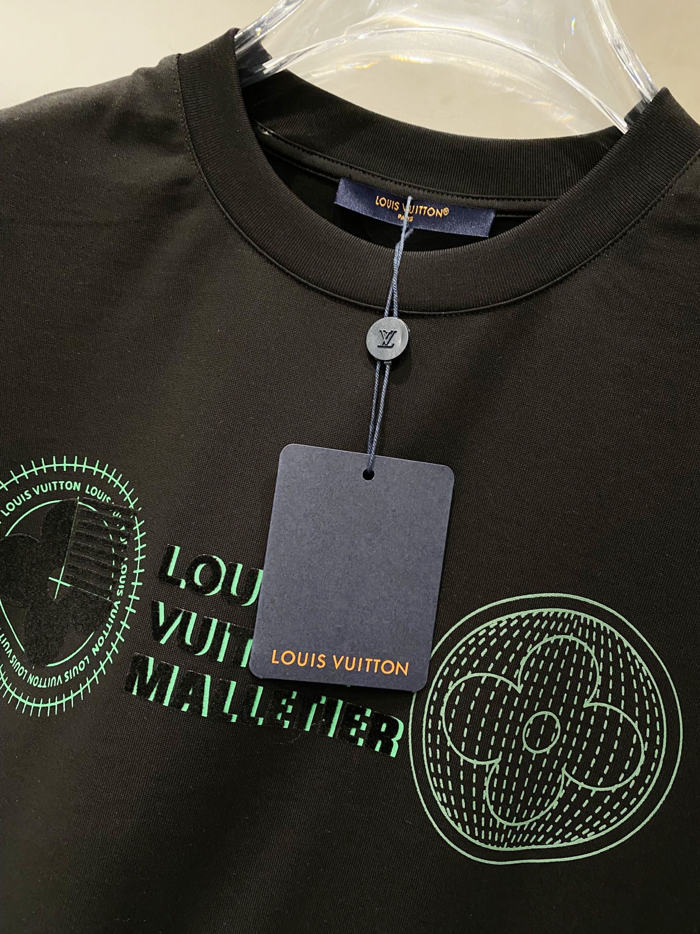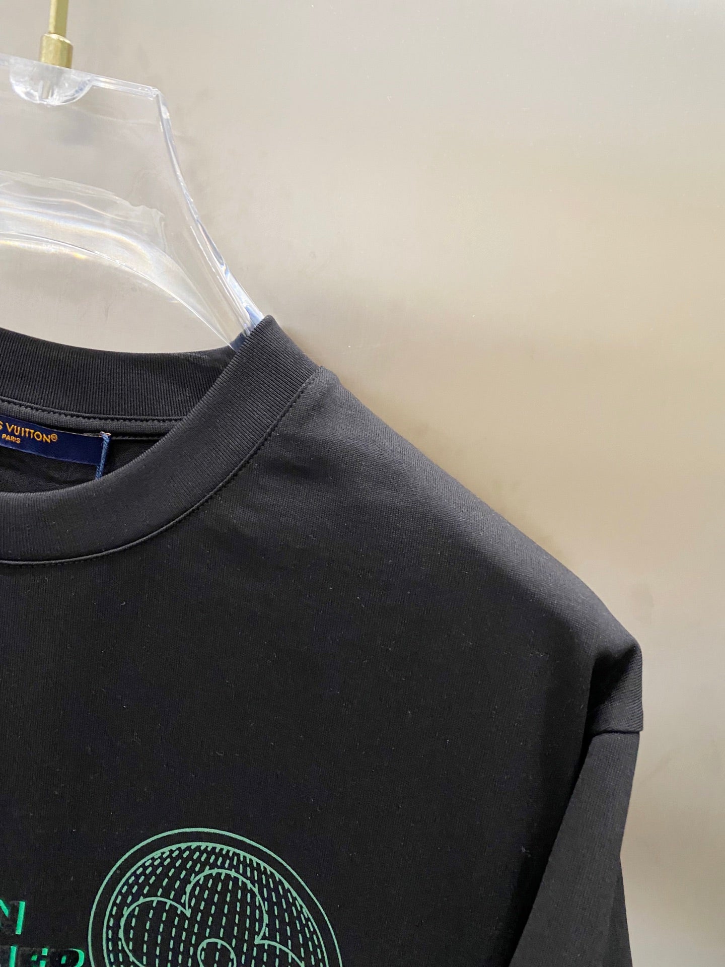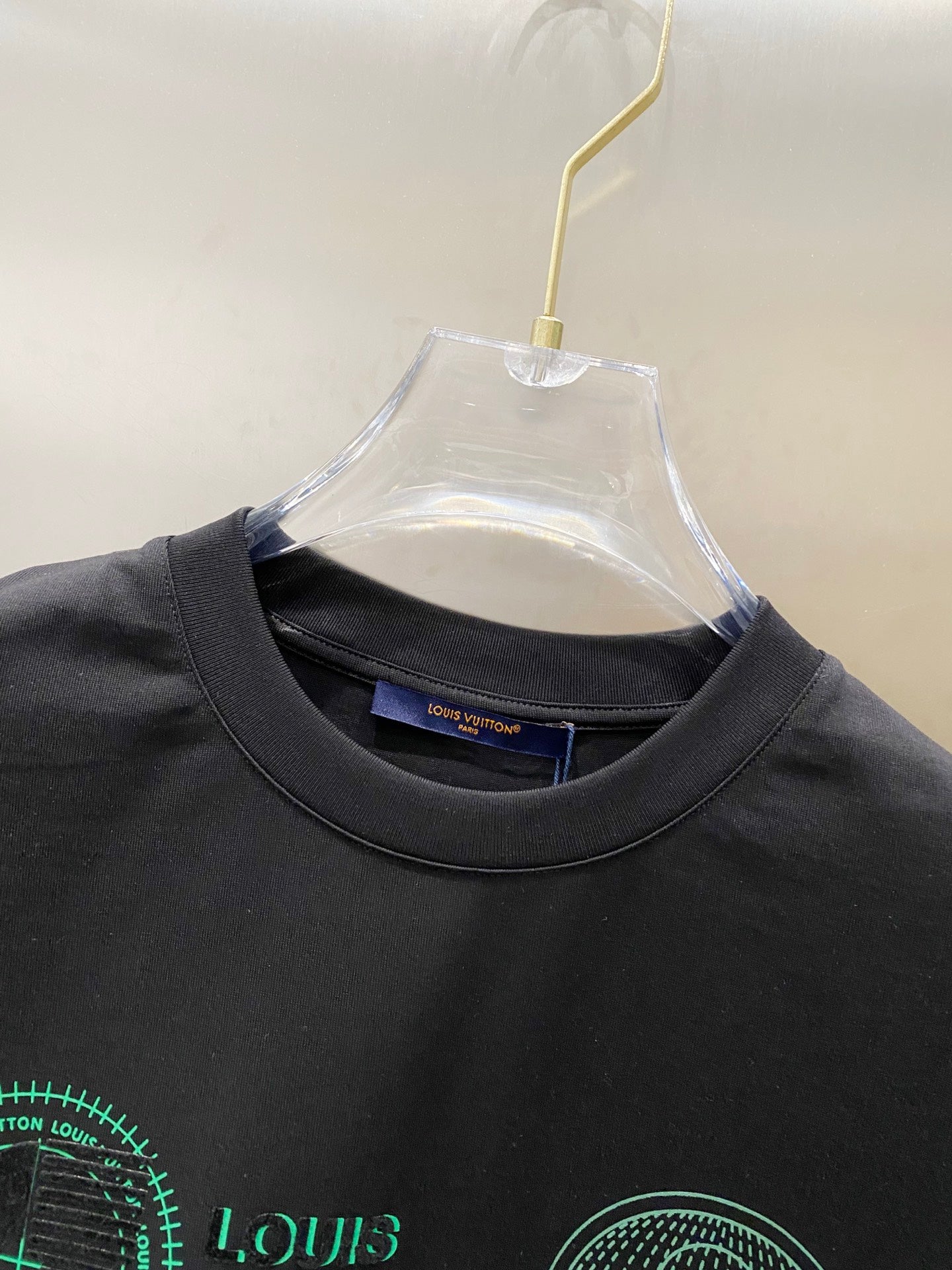 LV BLACK COTTON T-SHIRT GREEN LOGO PRINT 238842