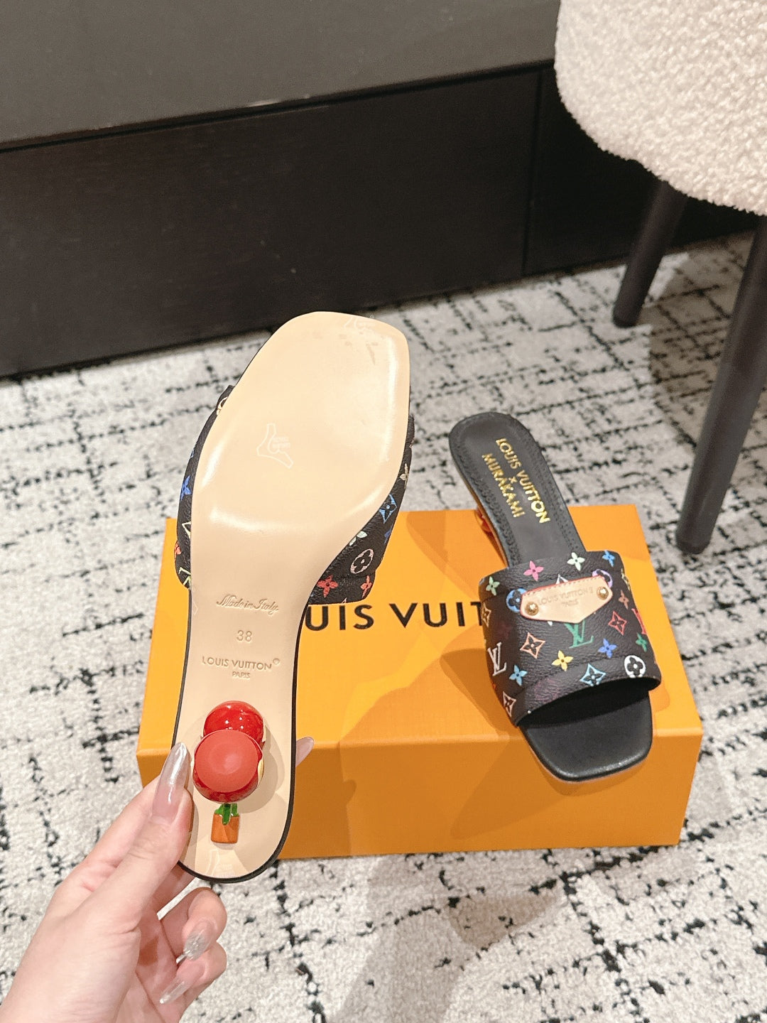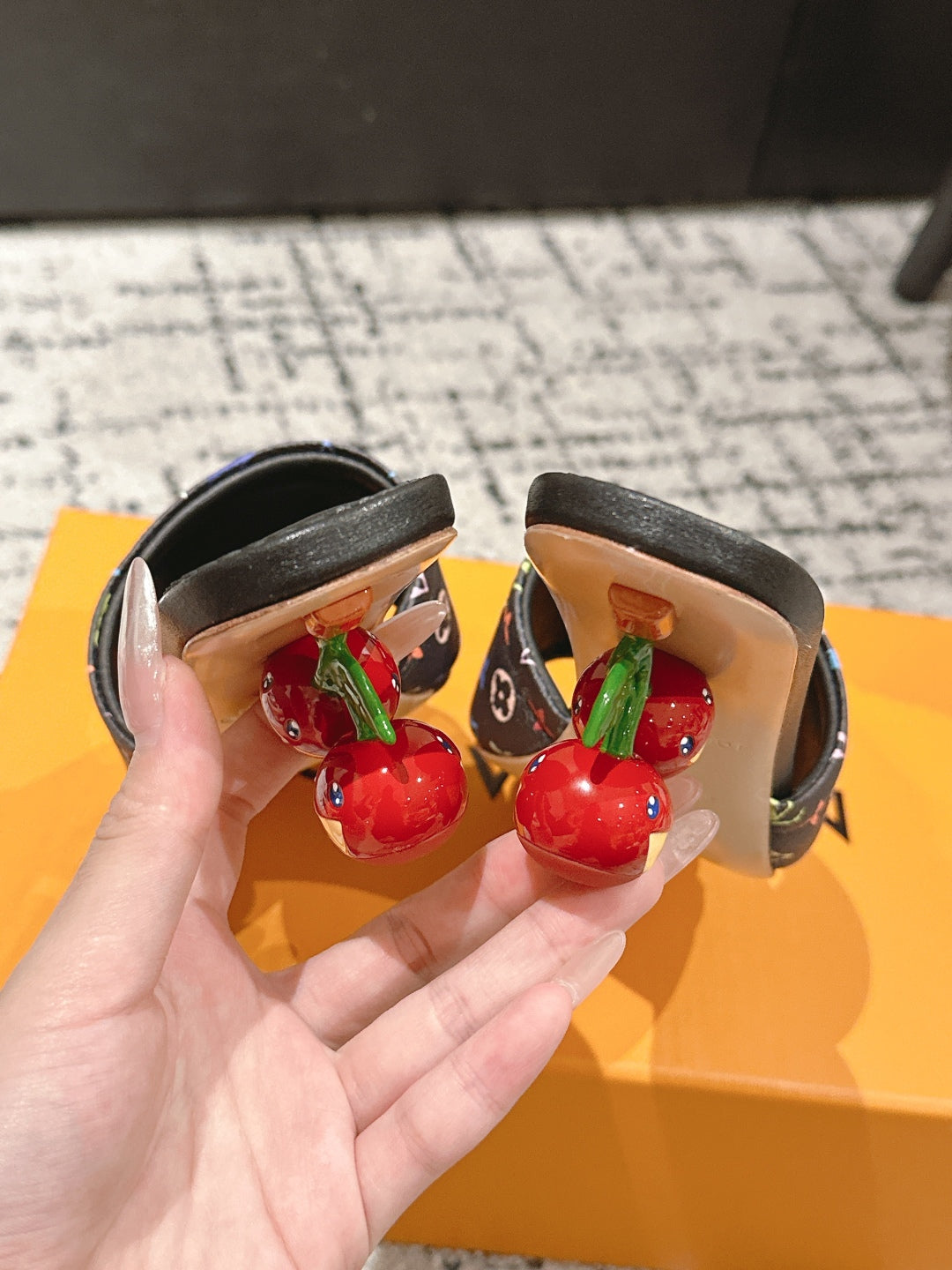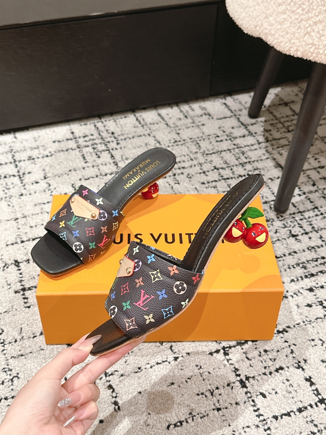 LV CHERRY HIGH HEELS 25S 55 MM IN BLACK CALFSKIN STYLE 14
