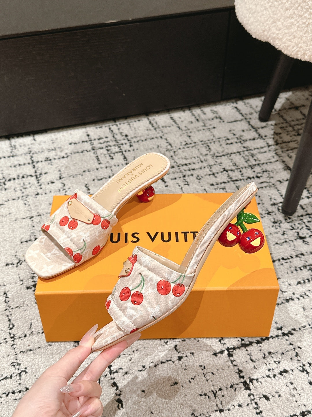 LV CHERRY HIGH HEELS 25S 55 MM IN NUDE DENIM STYLE 9