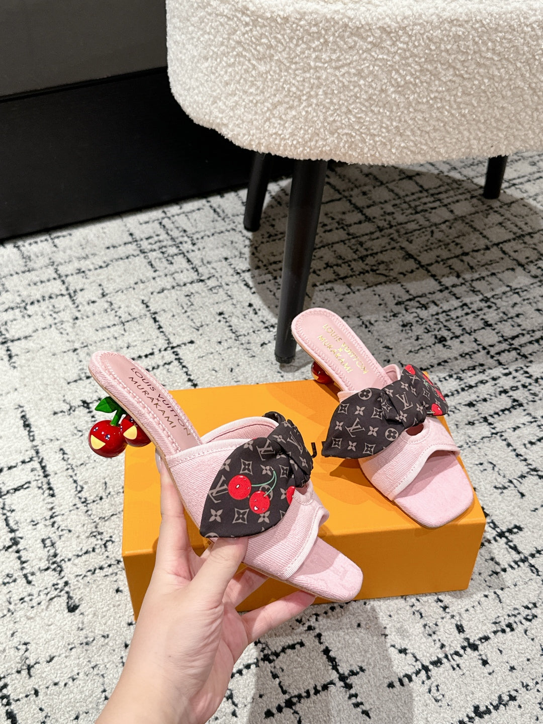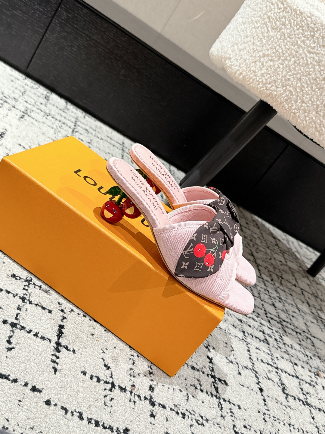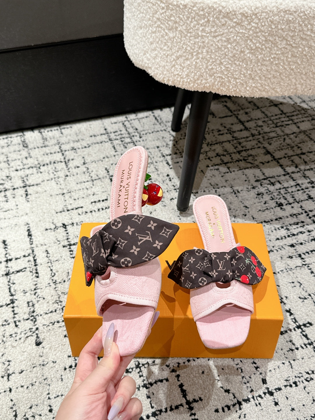 LV CHERRY HIGH HEELS 25S IN LIGHT PINK DENIM WITH BOW STYLE 6