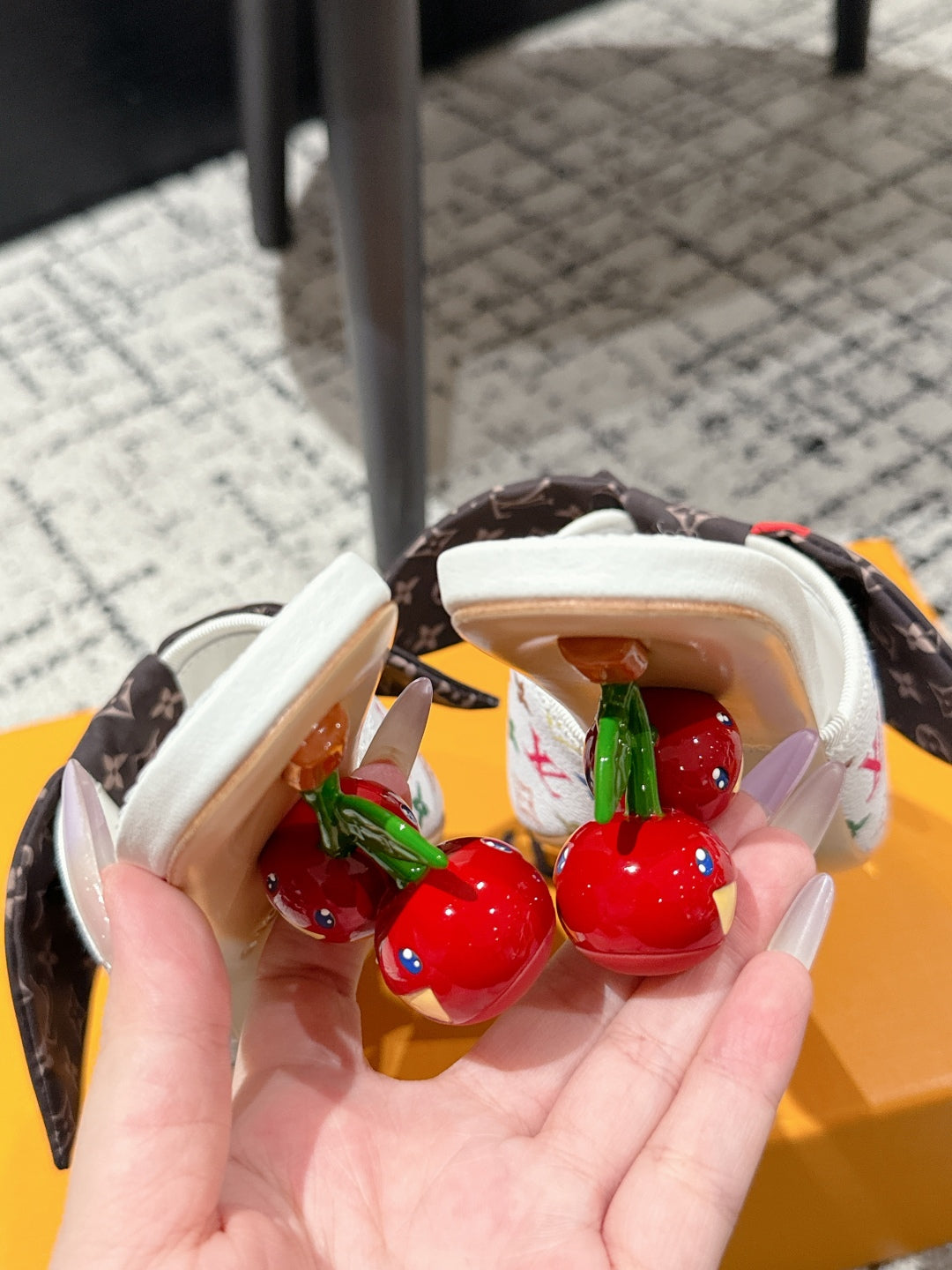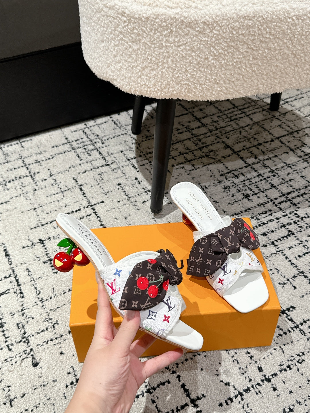 LV CHERRY HIGH HEELS 25S IN WHITE CALFSKIN WITH BOW STYLE 11