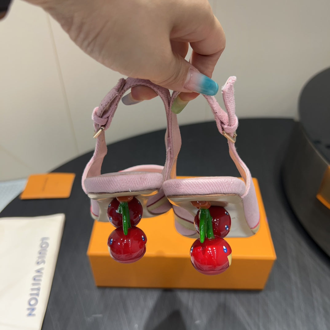 LV HIGH SLINGBACK 25S 55MM IN LIGHT PINK DENIM